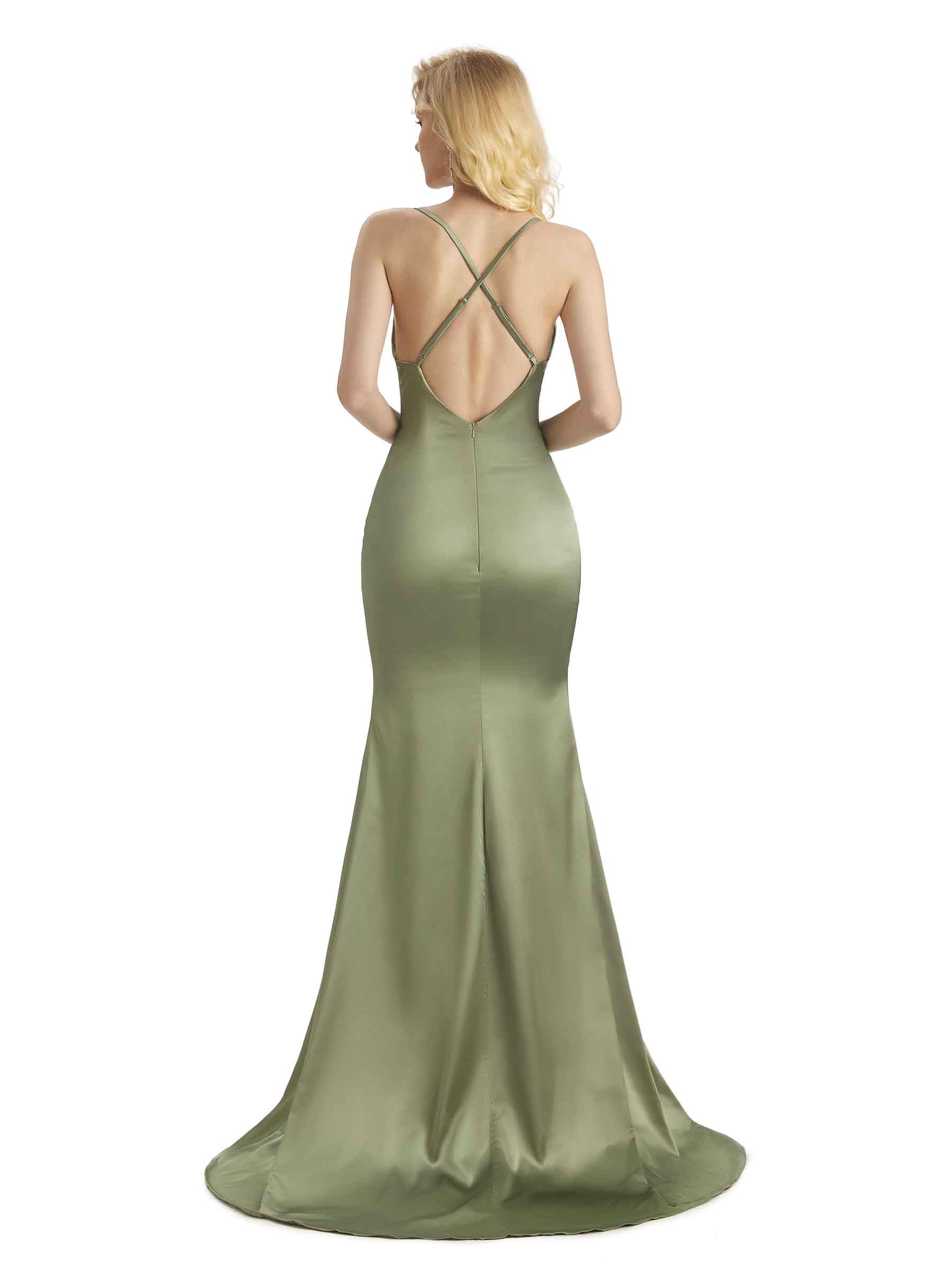 Elegant Soft Satin Cowl Neck Criss Cross Long Mermaid Wedding Bridesmaid Dresses Online - ChicSew – ChicSew