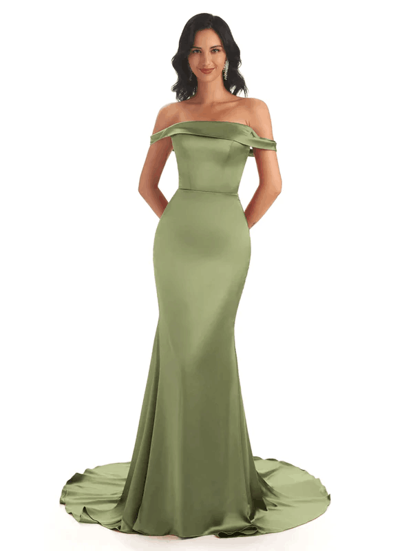 Elegant Soft Satin Off Shoulder Floor-Length Mermaid Bridesmaid Dresses In Stock $94.99