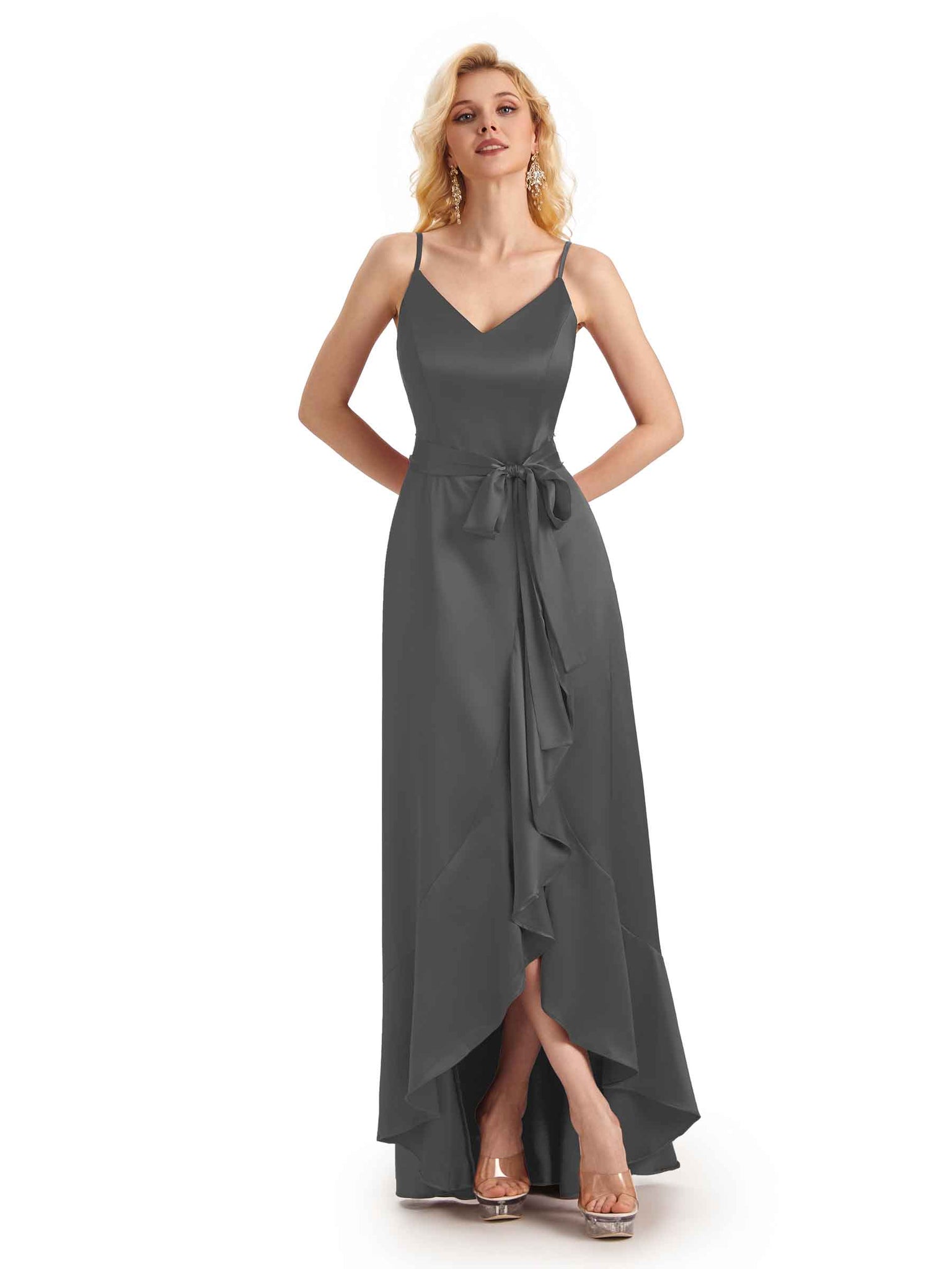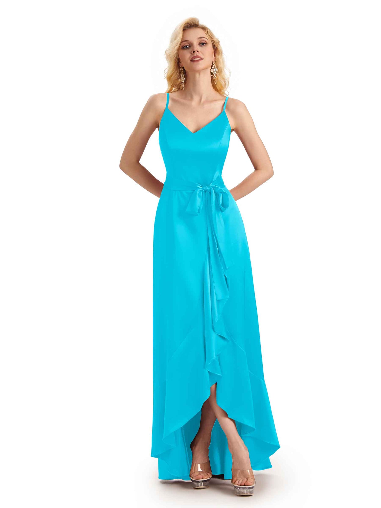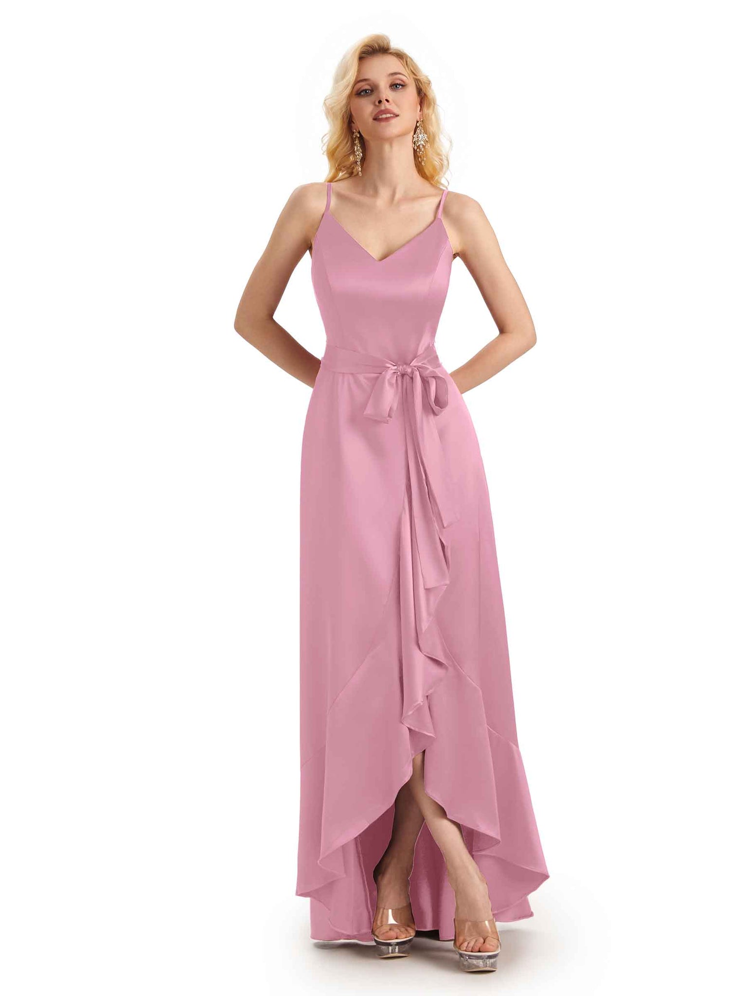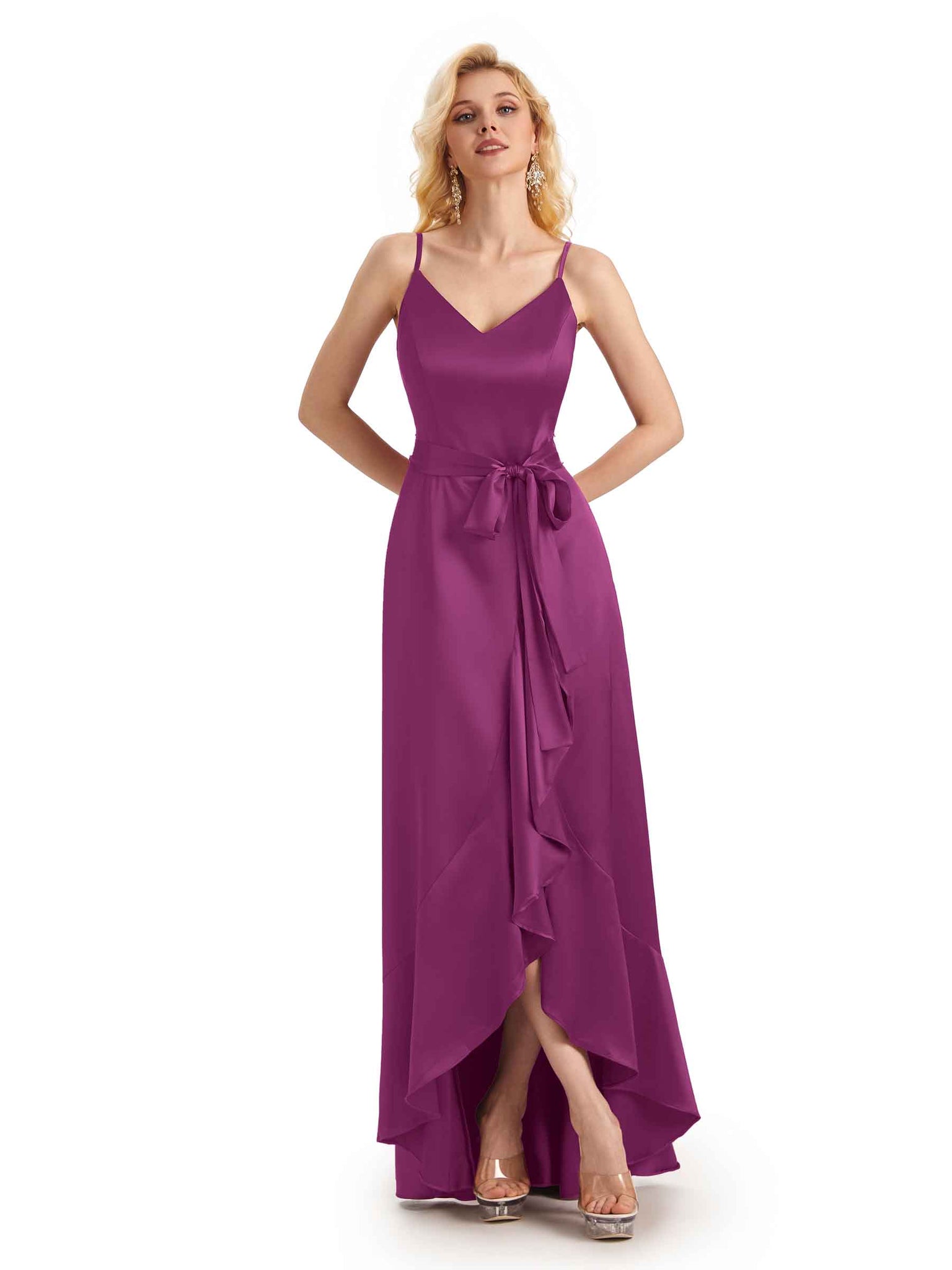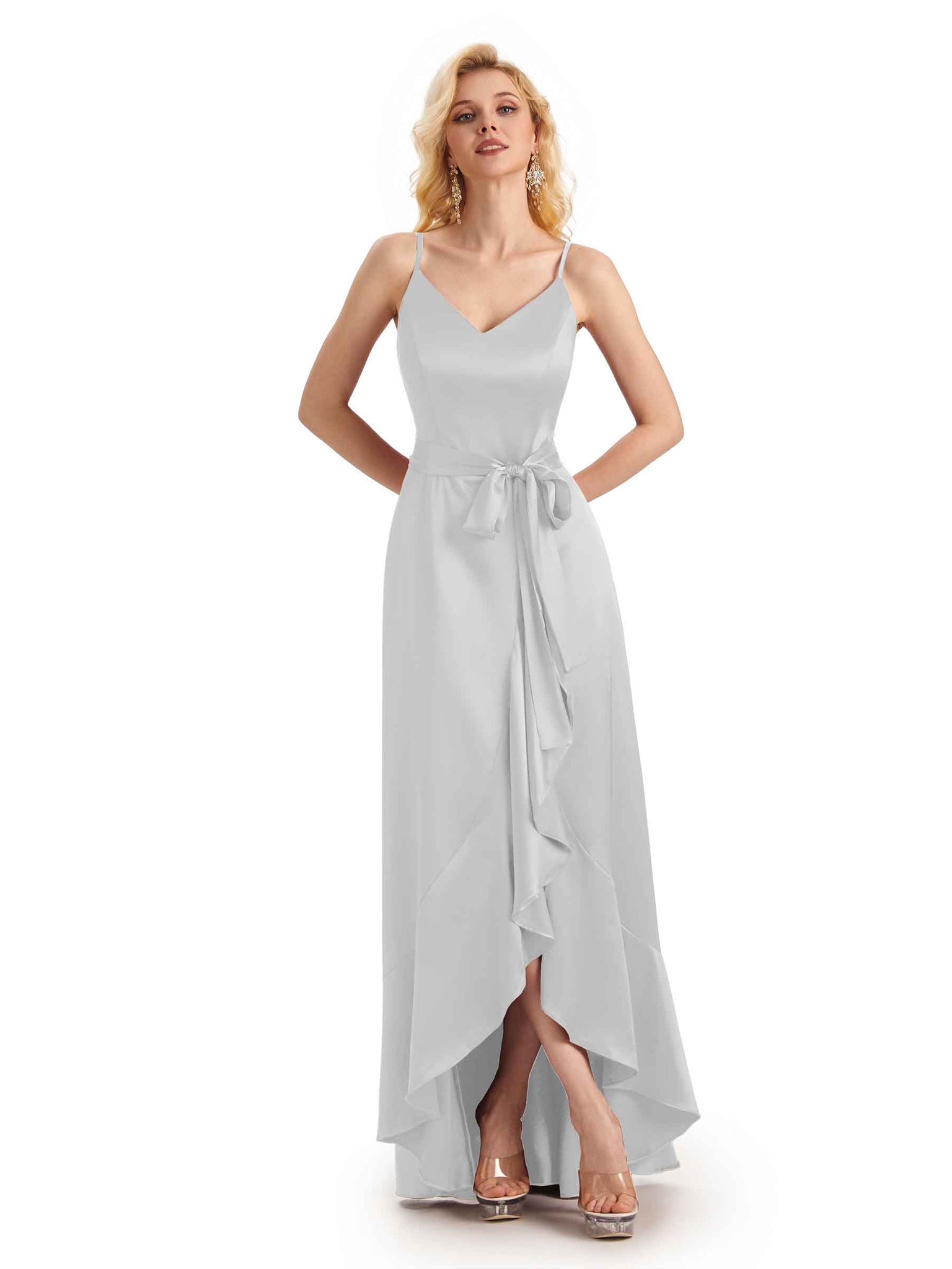 Elegant High Low V-neck Satin Formal Evening Dresses For Women Online