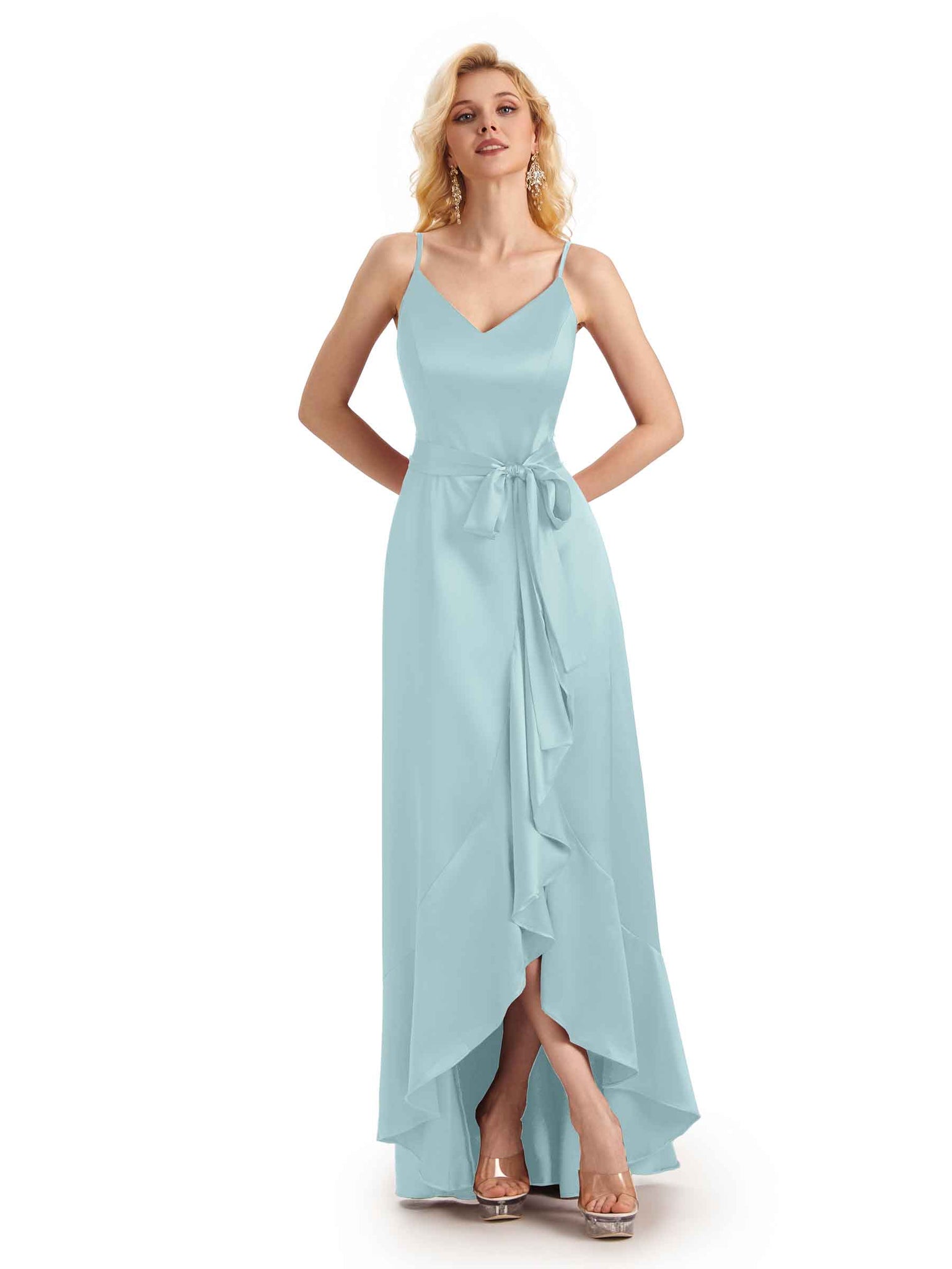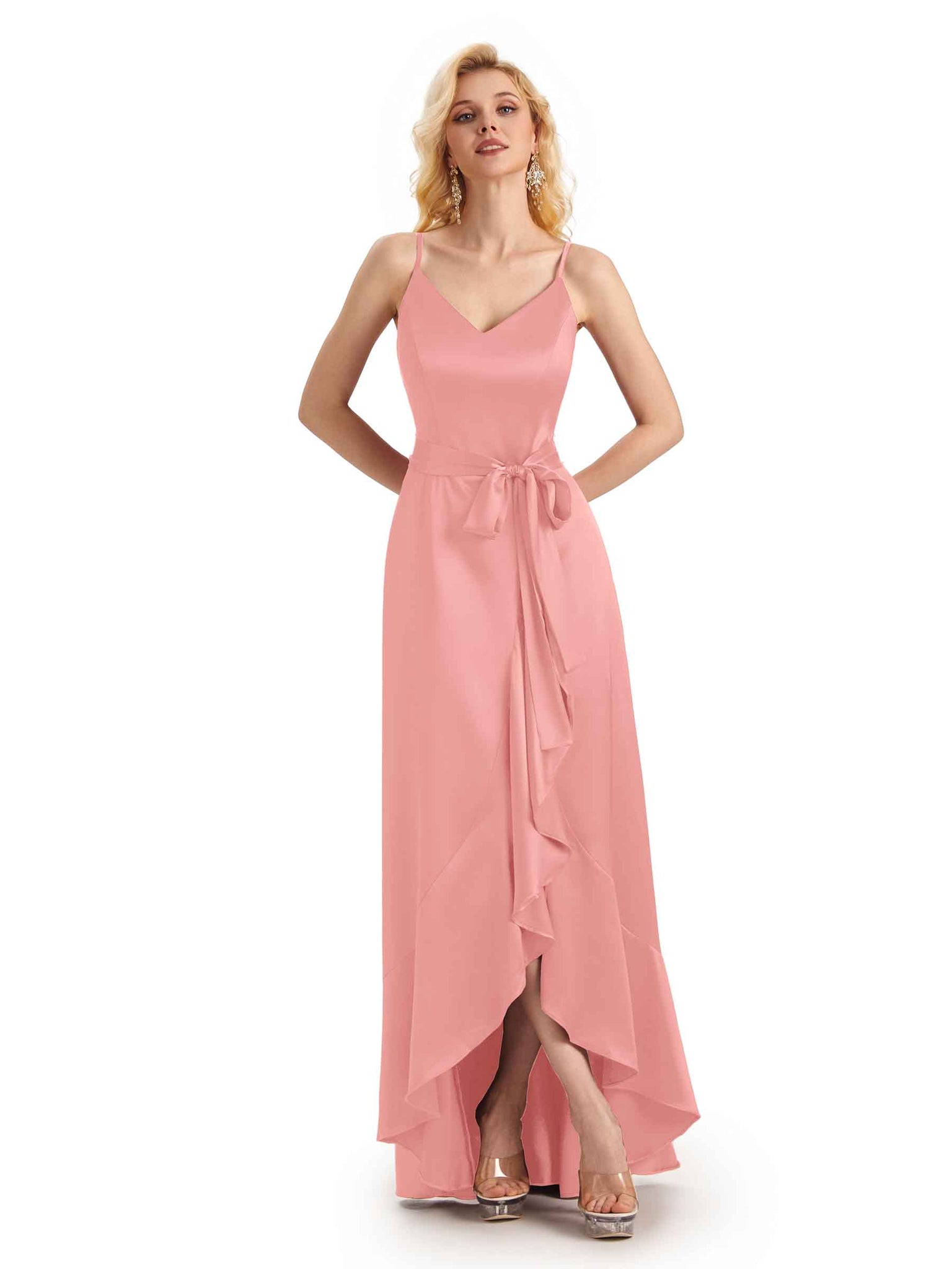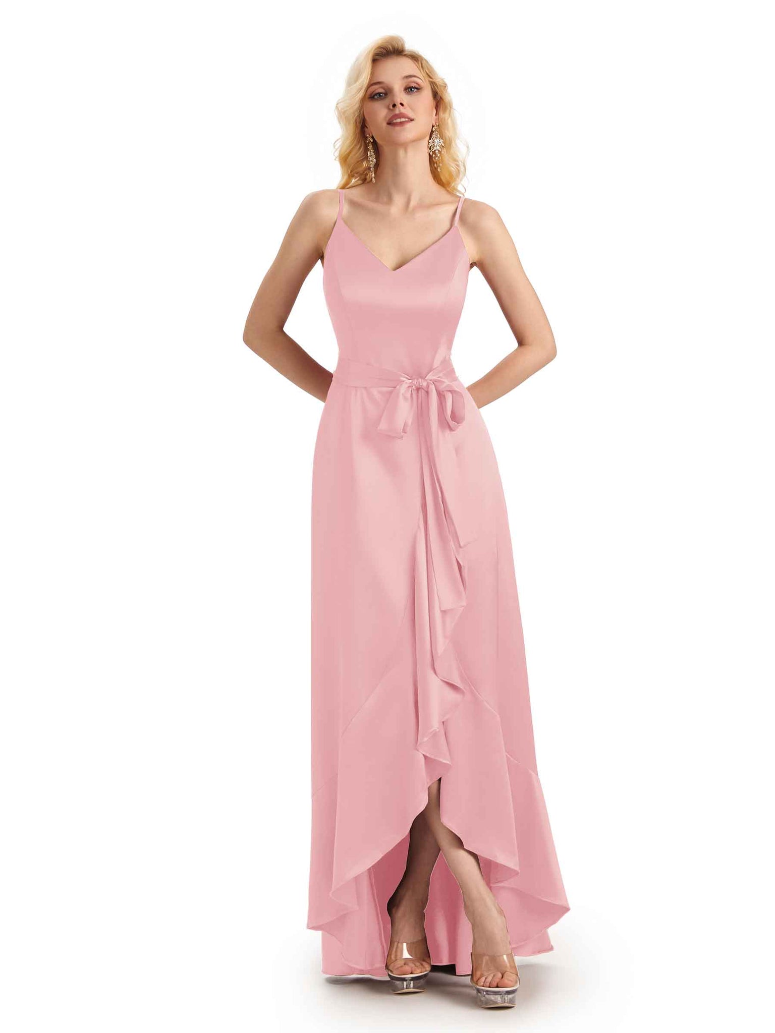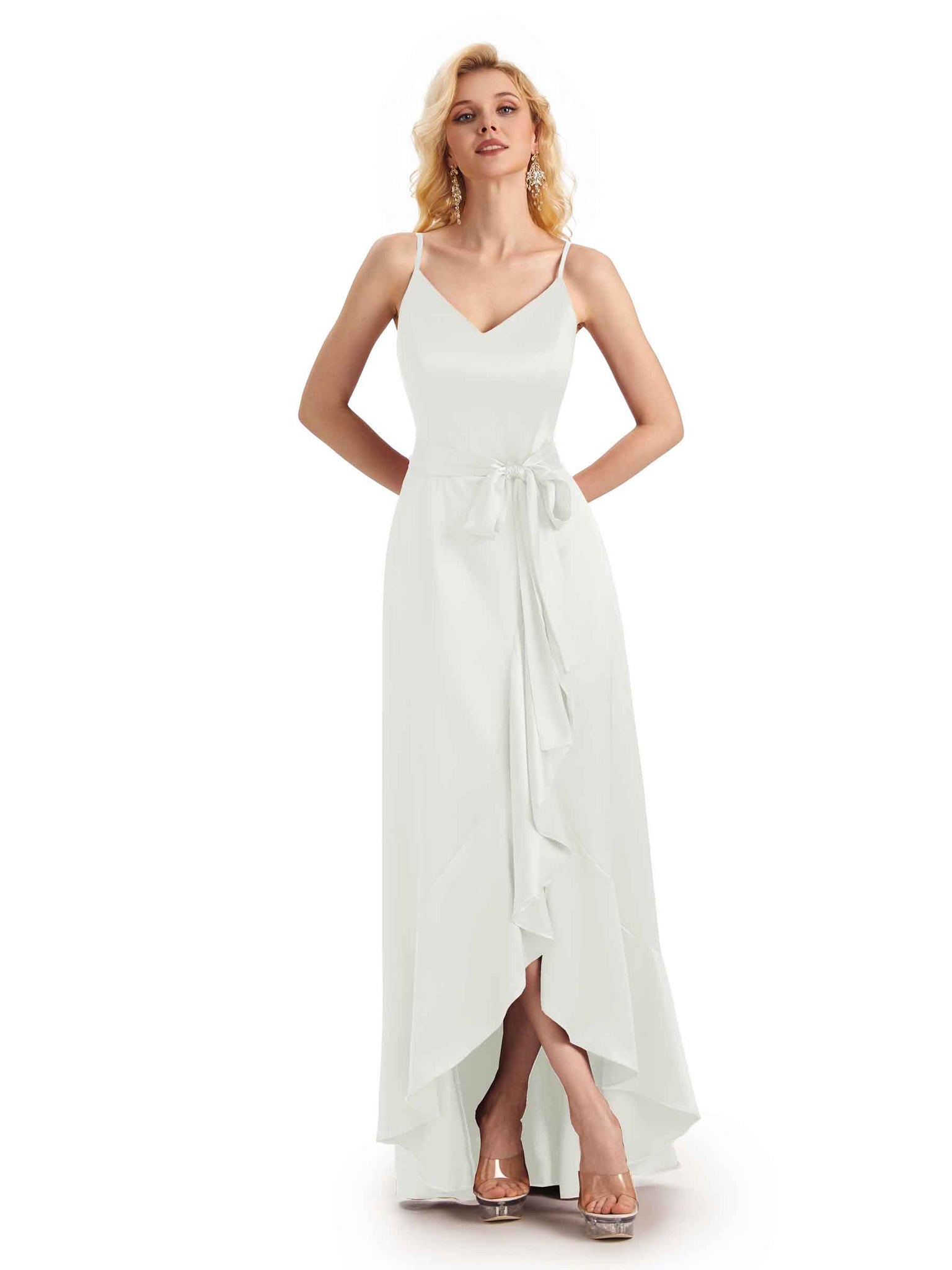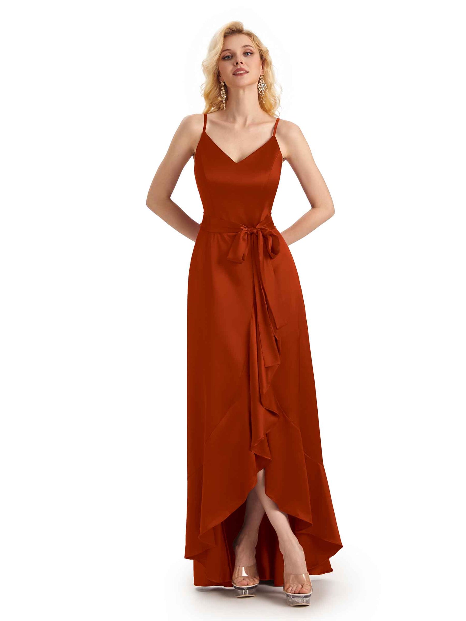 Elegant High Low V-neck Satin Formal Evening Dresses For Women Online