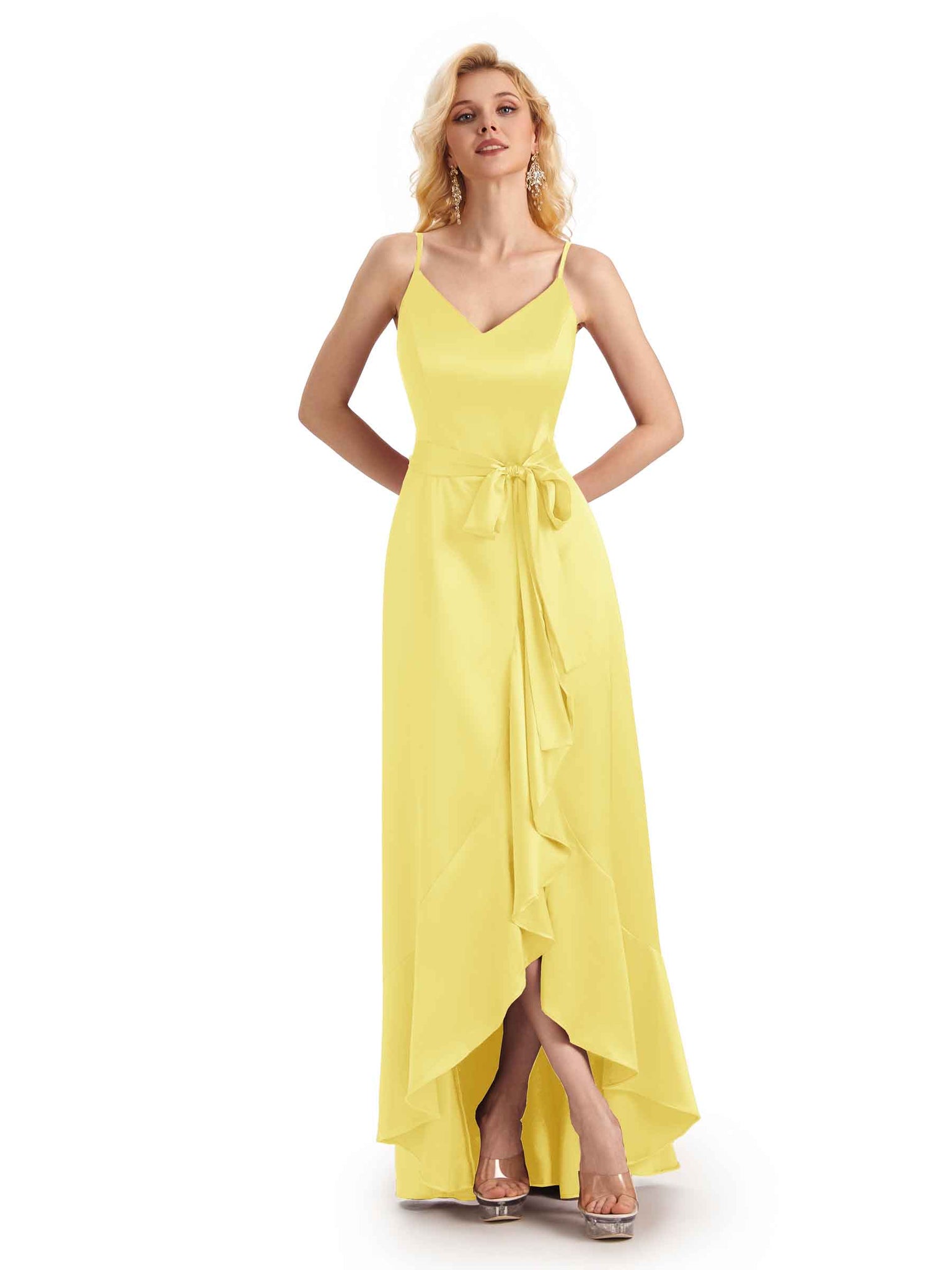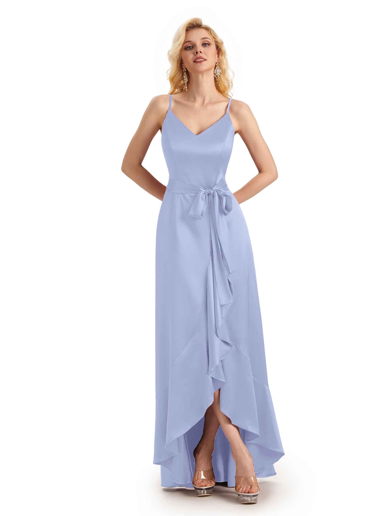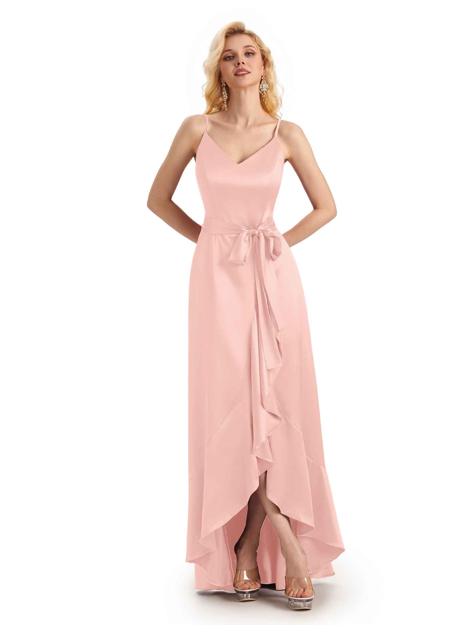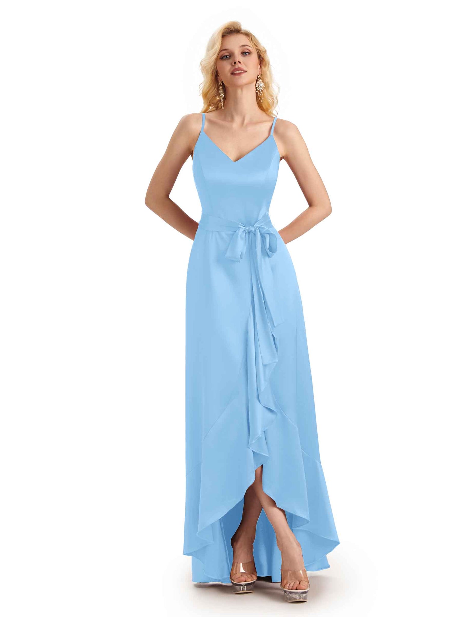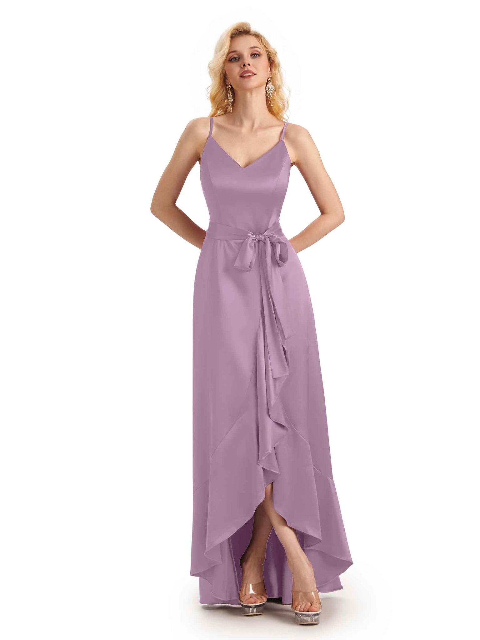Elegant High Low V-neck Satin Formal Evening Dresses For Women Online