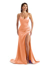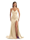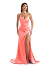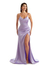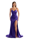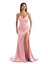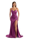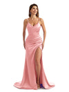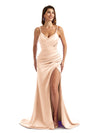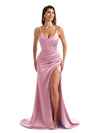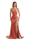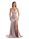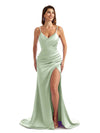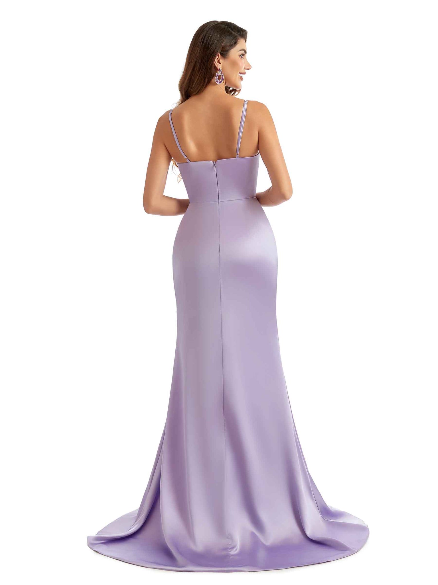 Elegant Spaghetti Straps Side Split Mermaid Silky Satin Pretty Long Bridesmaid Dresses - ChicSew – ChicSew