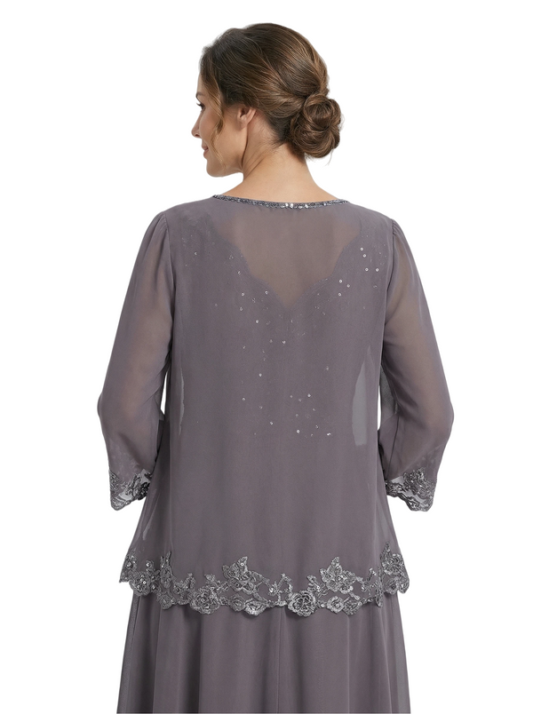 Half Sleeves Appliques Chiffon Elegant Floor-length Mother Of The Bride Dresses