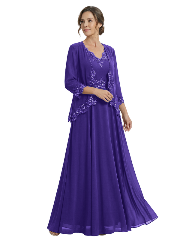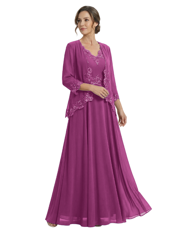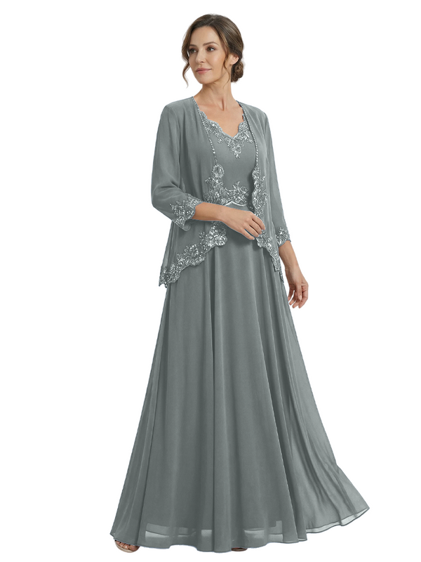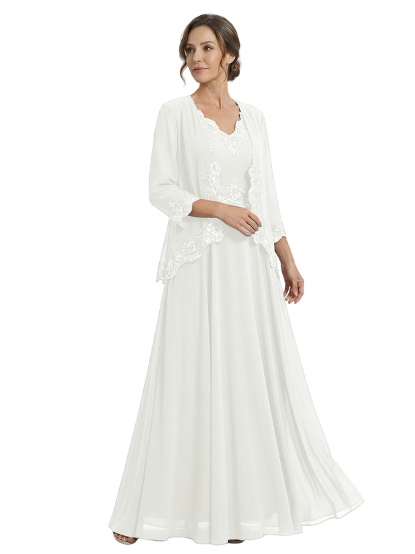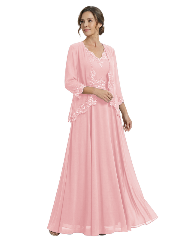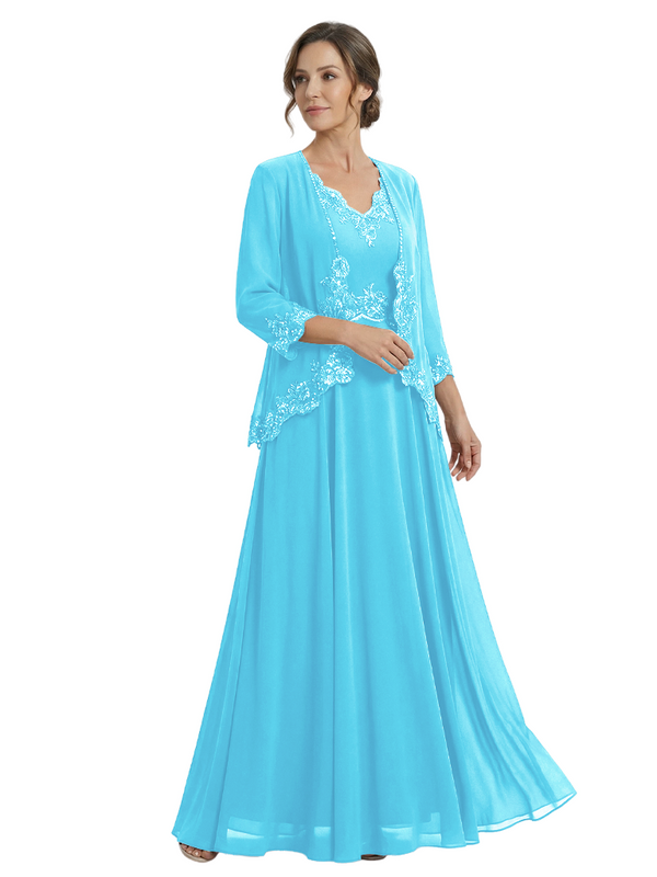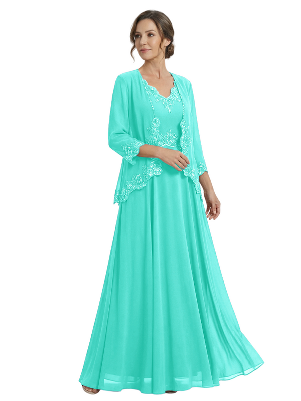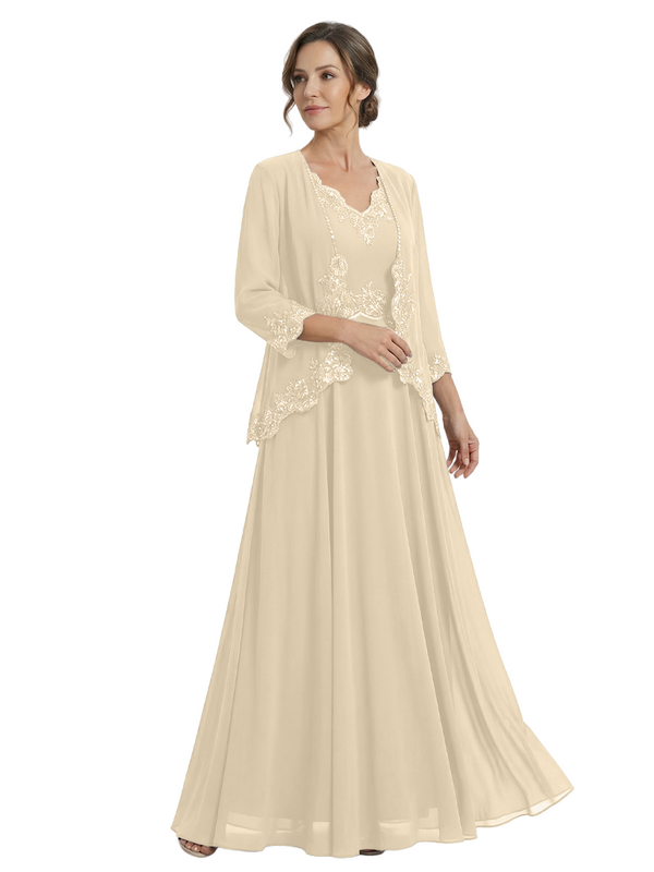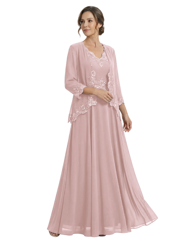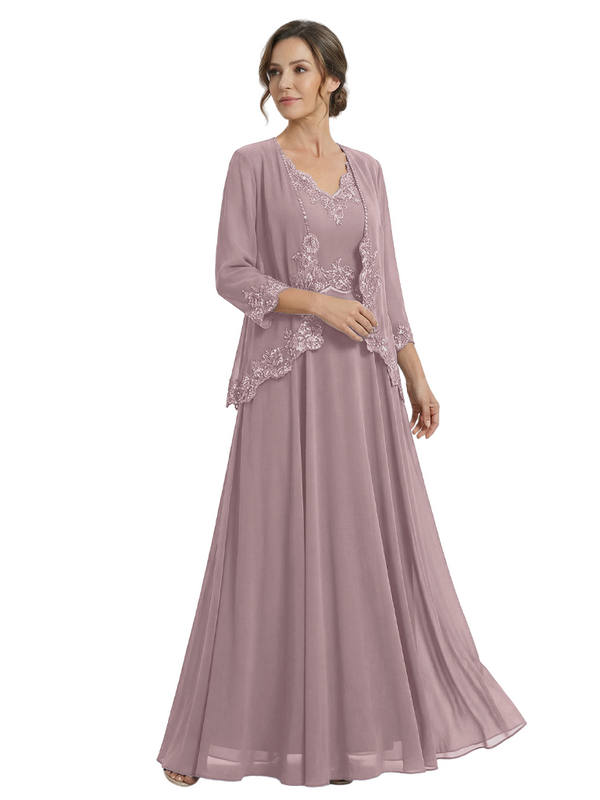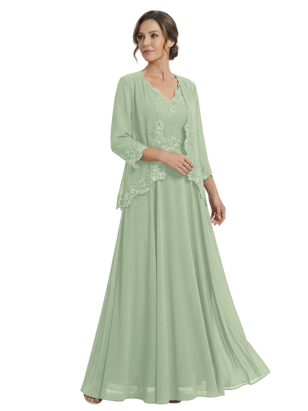 Elegant Spaghetti Straps Sleeveless Lace Chiffon A-Line Mother of The Bride Dresses With Jacket - ChicSew – ChicSew