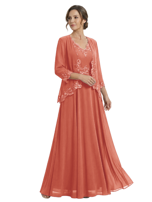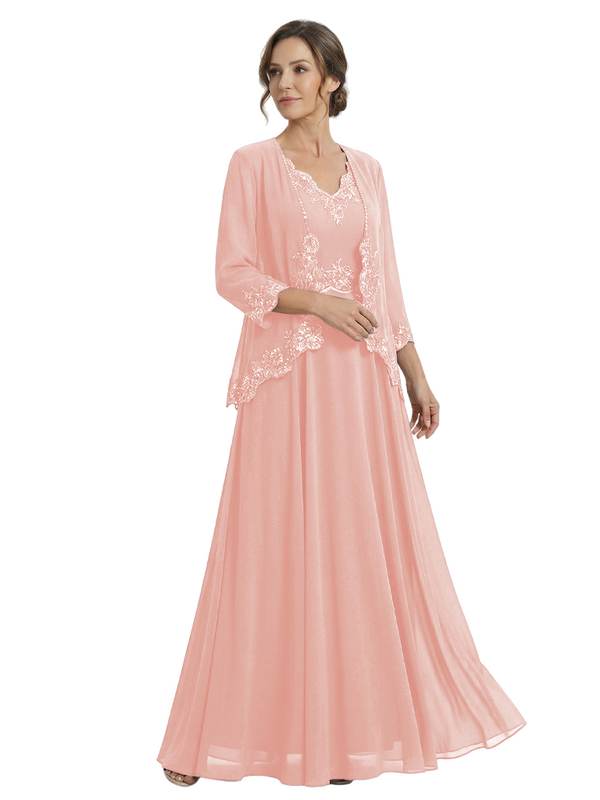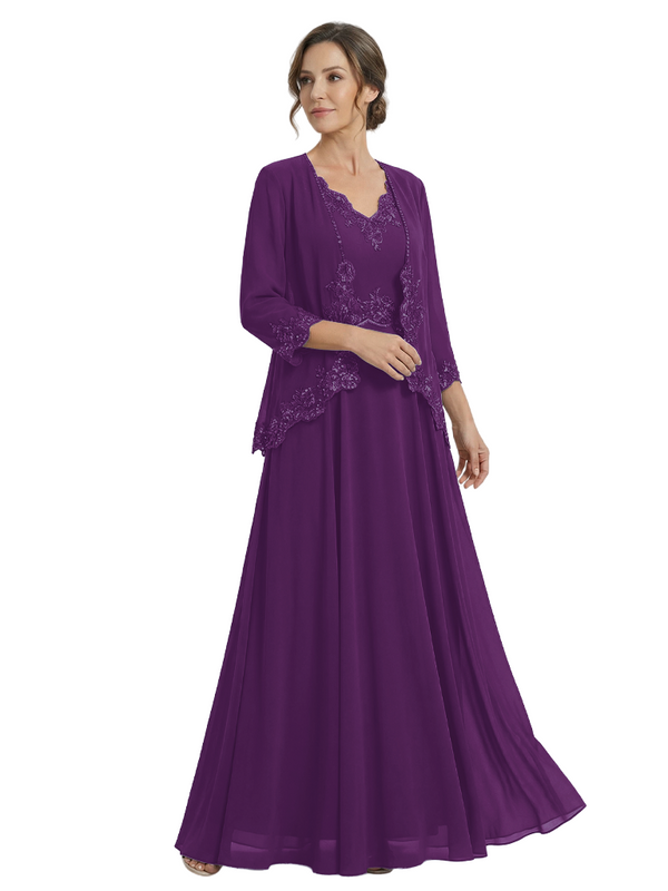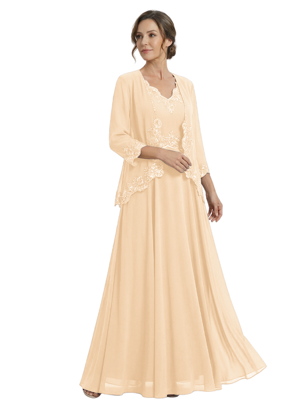 Half Sleeves Appliques Chiffon Elegant Floor-length Mother Of The Bride DressesHalf Sleeves Appliques Chiffon Elegant Floor-length Mother Of The Bride Dresses