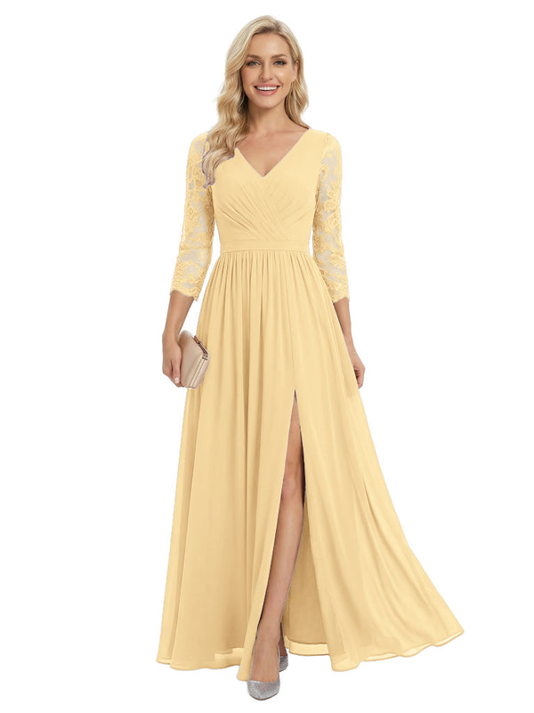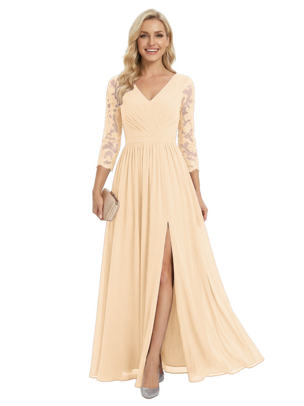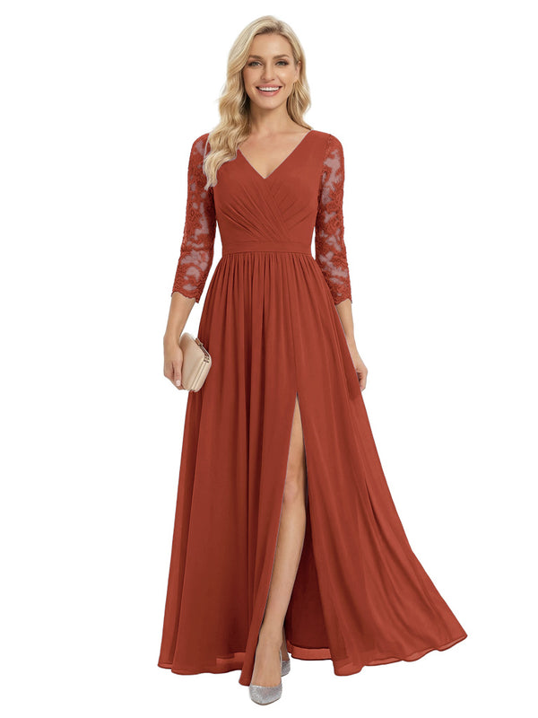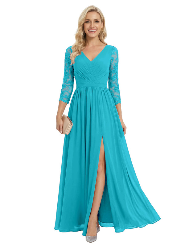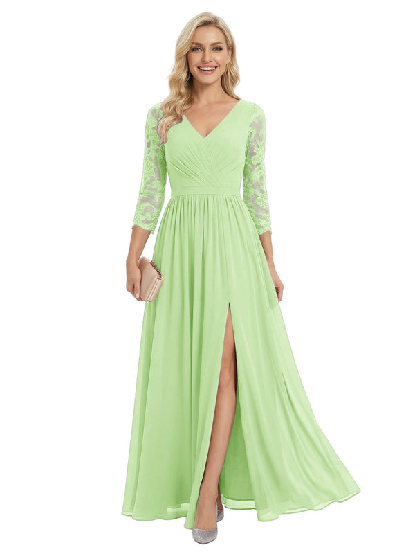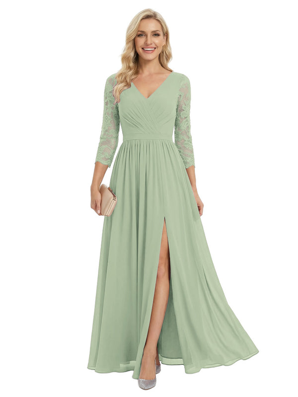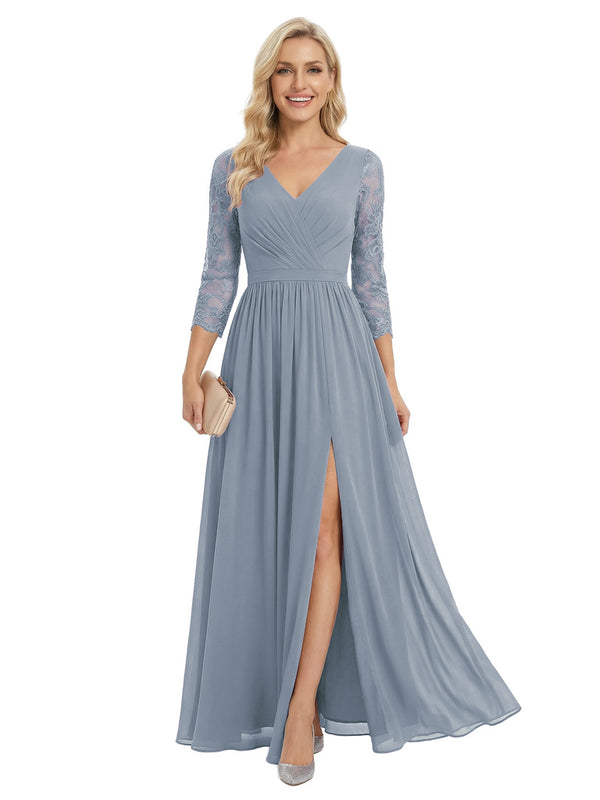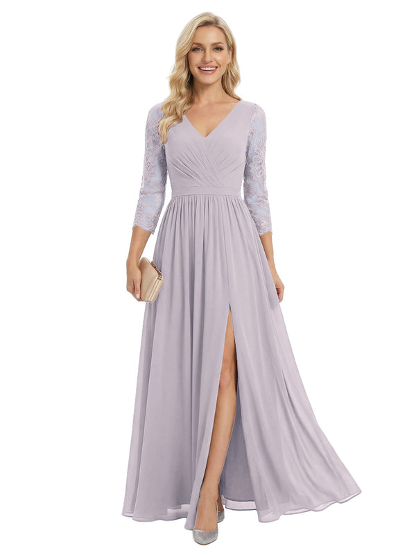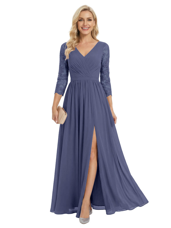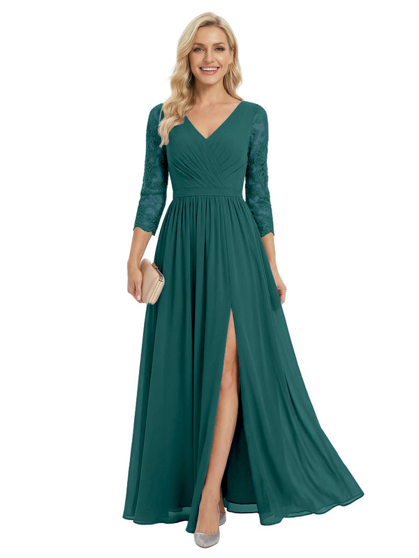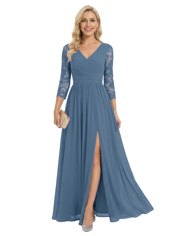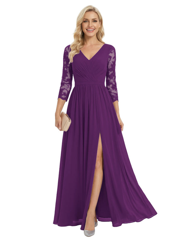 Elegant V-Neck 3/4 Sleeves A-Line Side Slit Chiffon Mother Of The Bride Dress - ChicSew – ChicSew