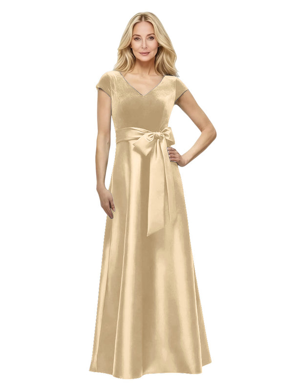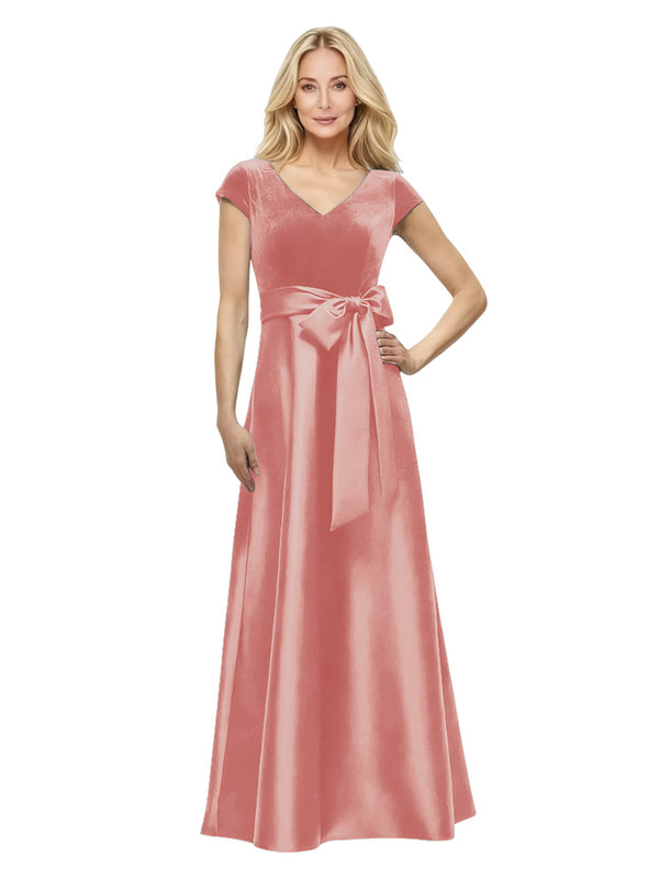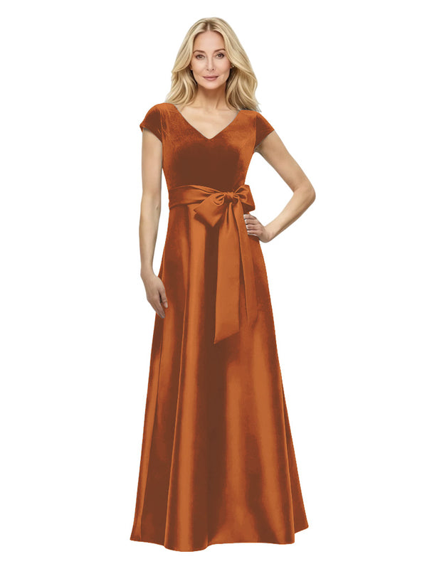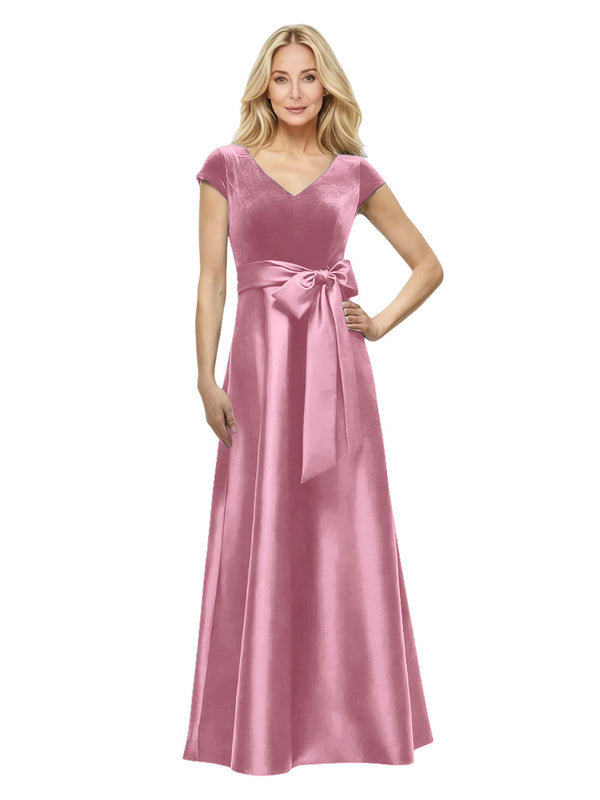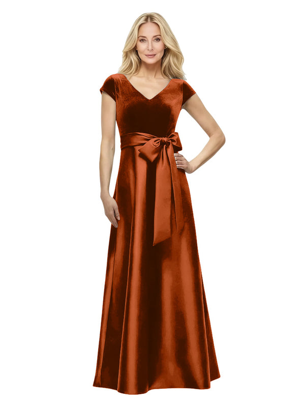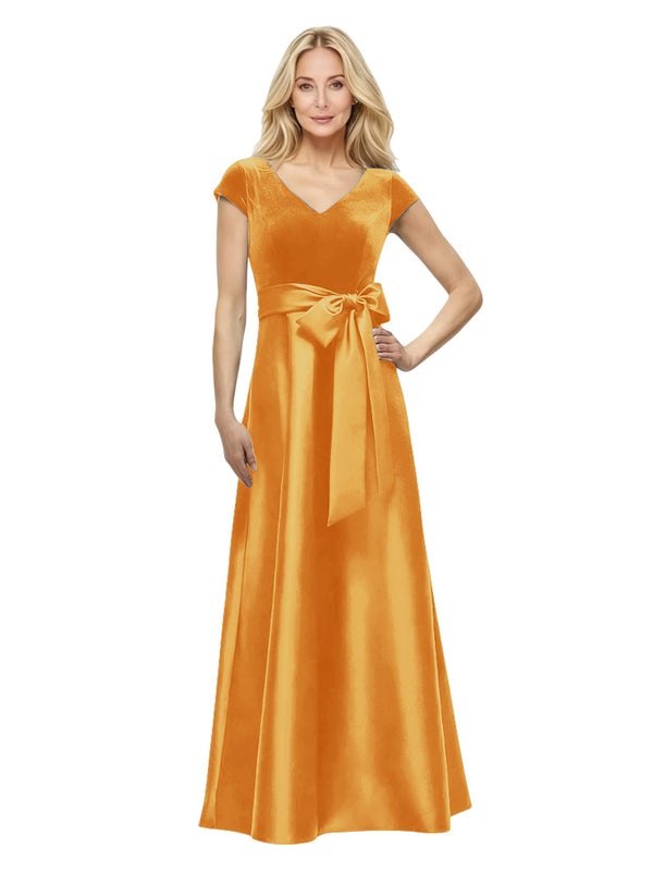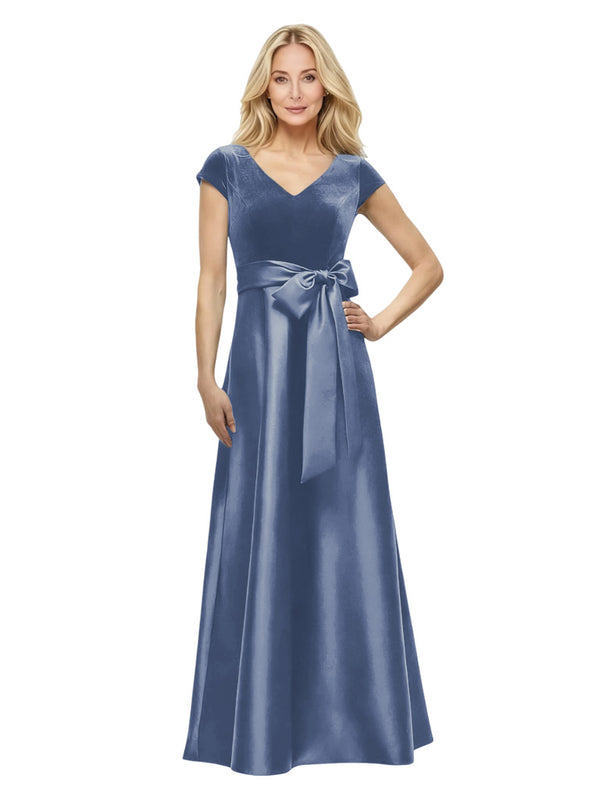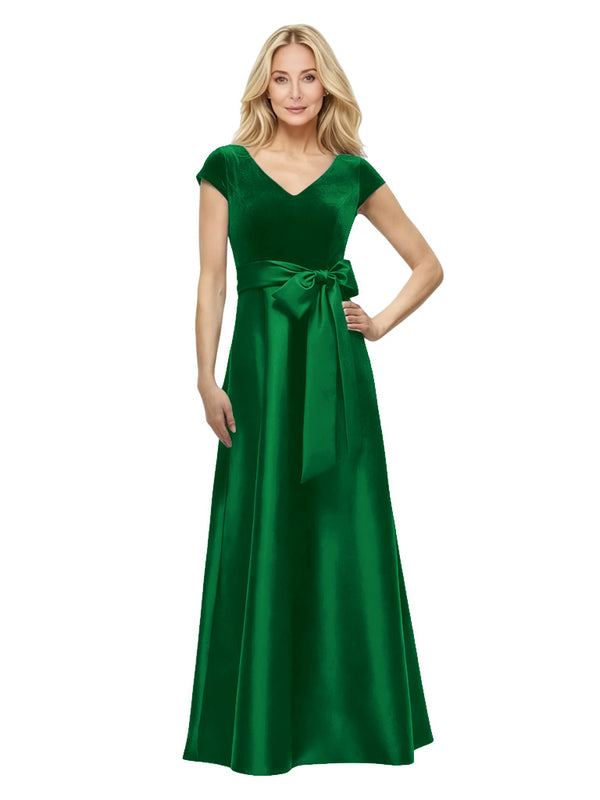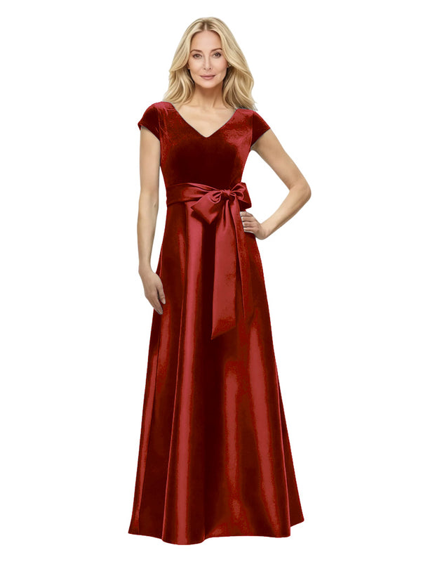 Elegant V-Neck Cap Sleeves A-line Velvet Long Mother of The Dresses