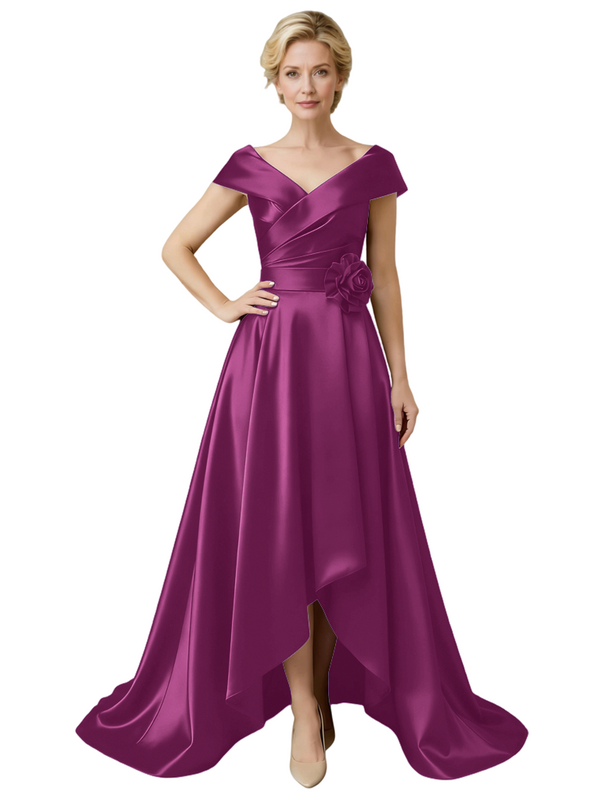 Elegant V-Neck Cap Sleeves Ruching A-Line Mother Of The Bride Dresses - ChicSew – ChicSew