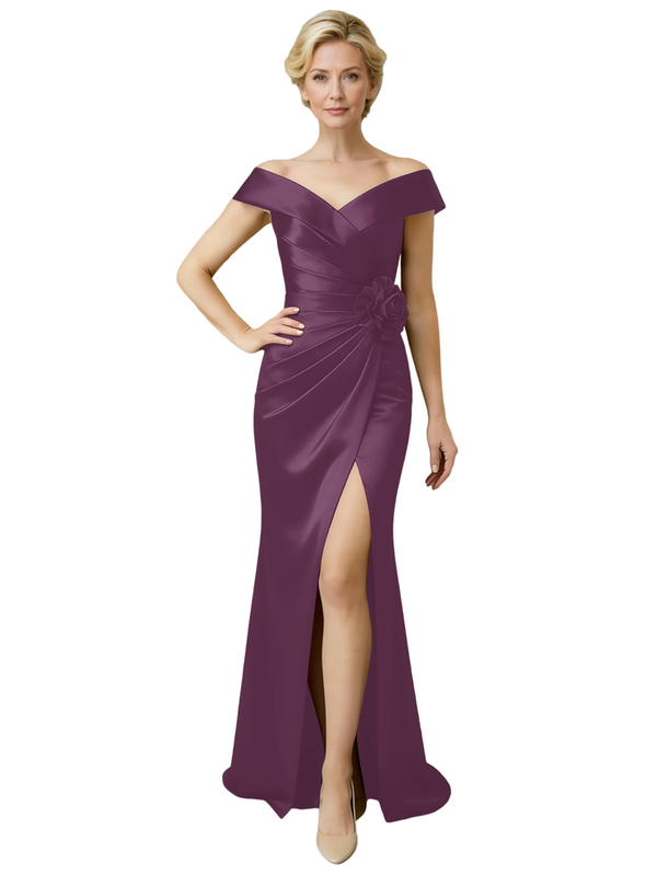 Elegant V-Neck Cap Sleeves Ruching Side Slit Mermaid Mother Of The Bride Dresses