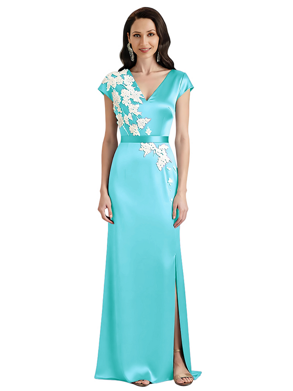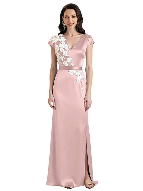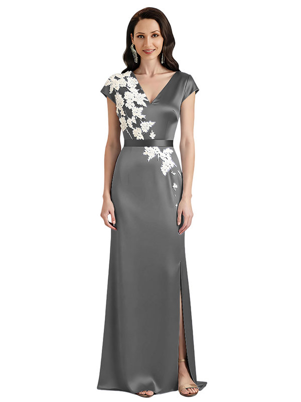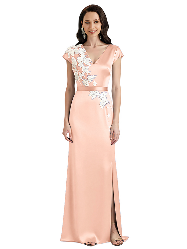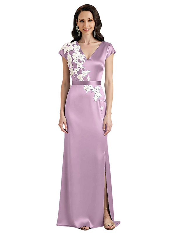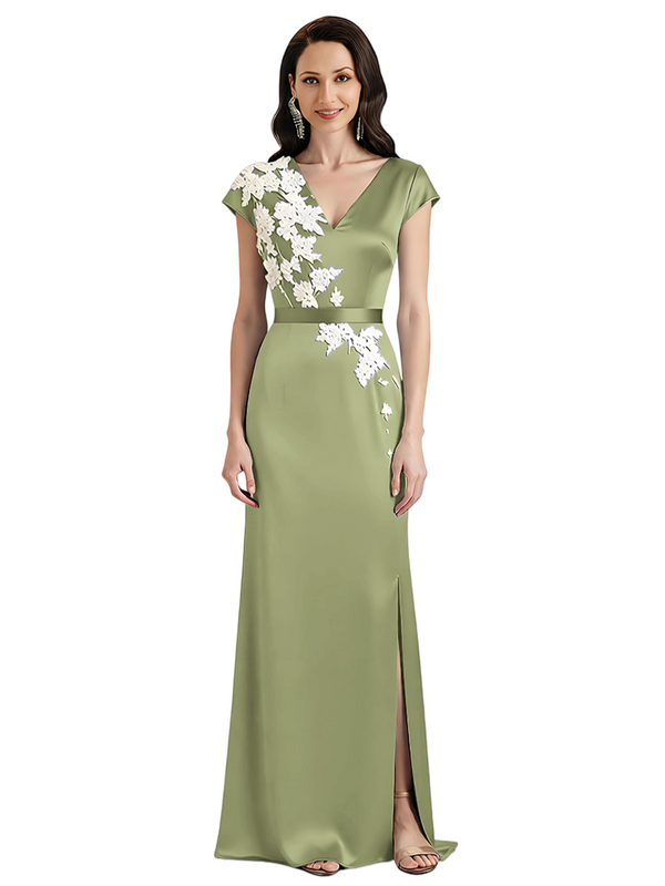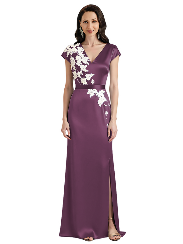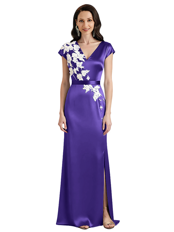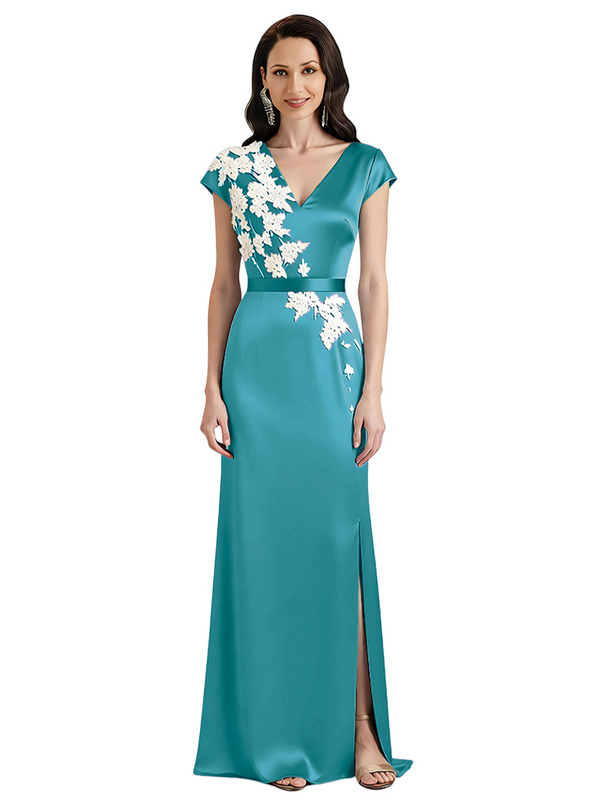 Elegant V-Neck Cap Sleeves Side Slit Satin Mermaid Floor-Length Mother Of The Bride Dresses - ChicSew – ChicSew