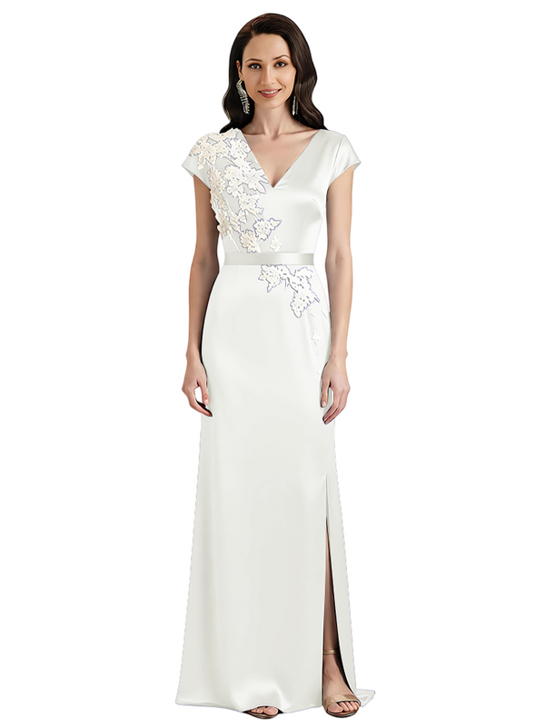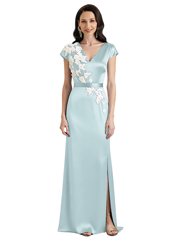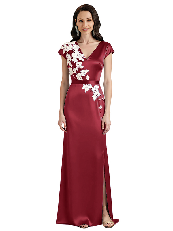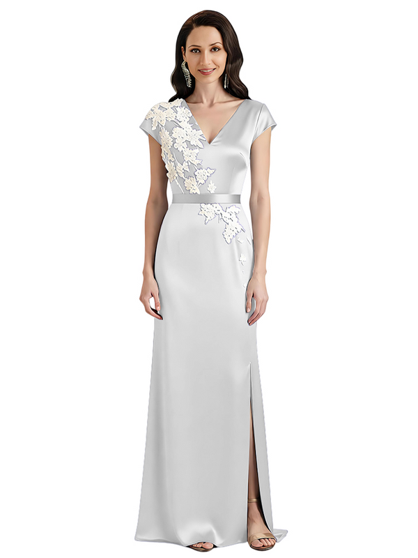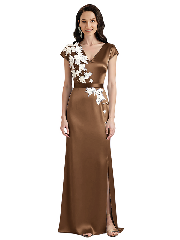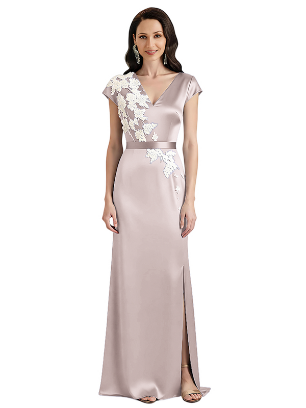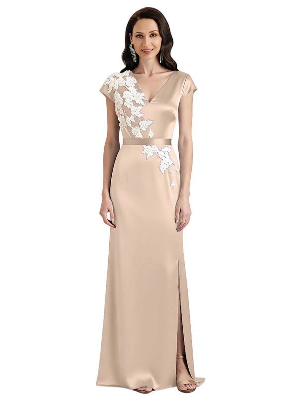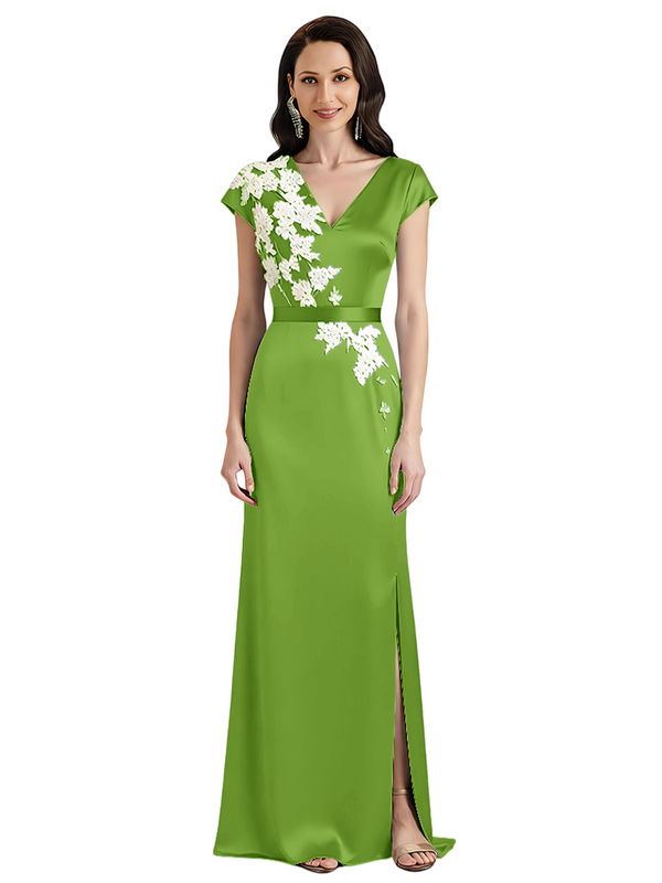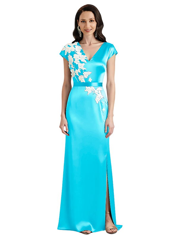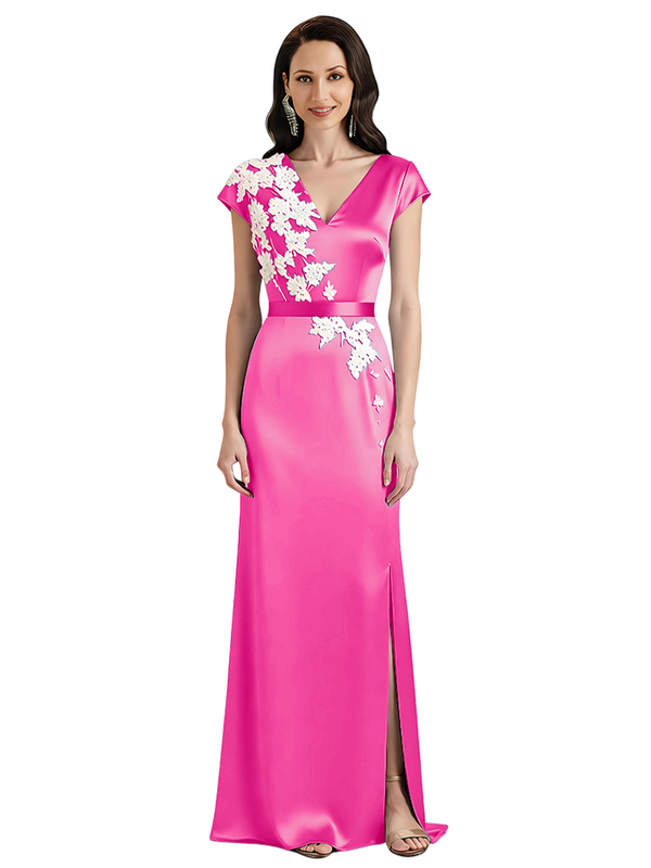 Elegant V-Neck Cap Sleeves Side Slit Satin Mermaid Floor-Length Mother Of The Bride Dresses - ChicSew – ChicSew