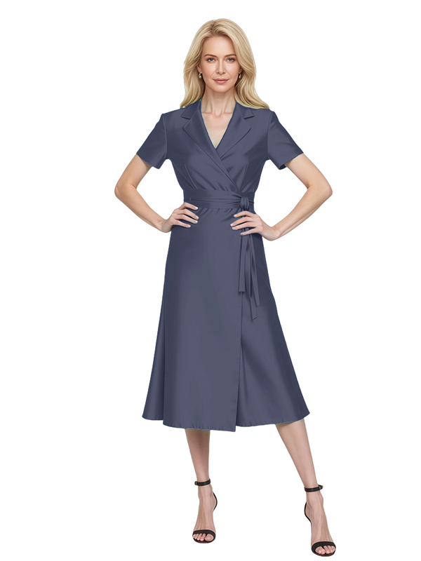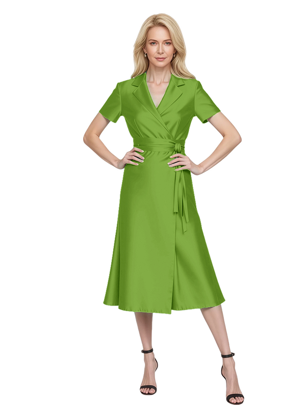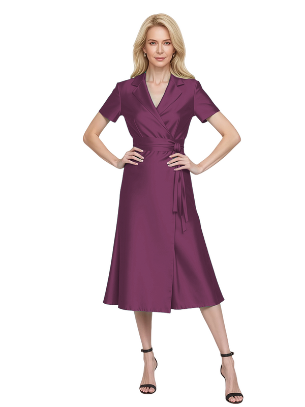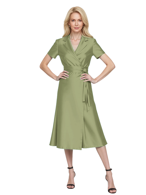 Elegant V-Neck Satin A-Line Short Sleeves Midi-Length Mother Of The Bride Dresses - ChicSew – ChicSew