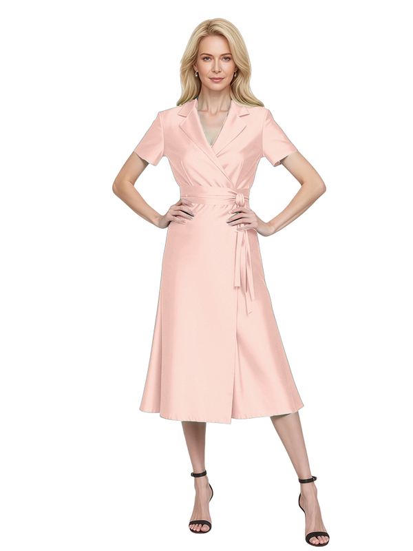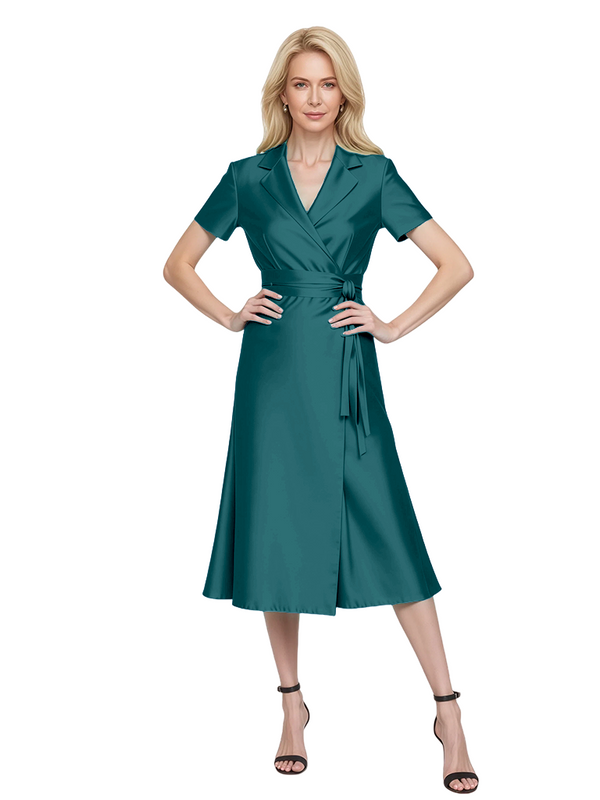 Elegant V-Neck Satin A-Line Short Sleeves Midi-Length Mother Of The Bride Dresses