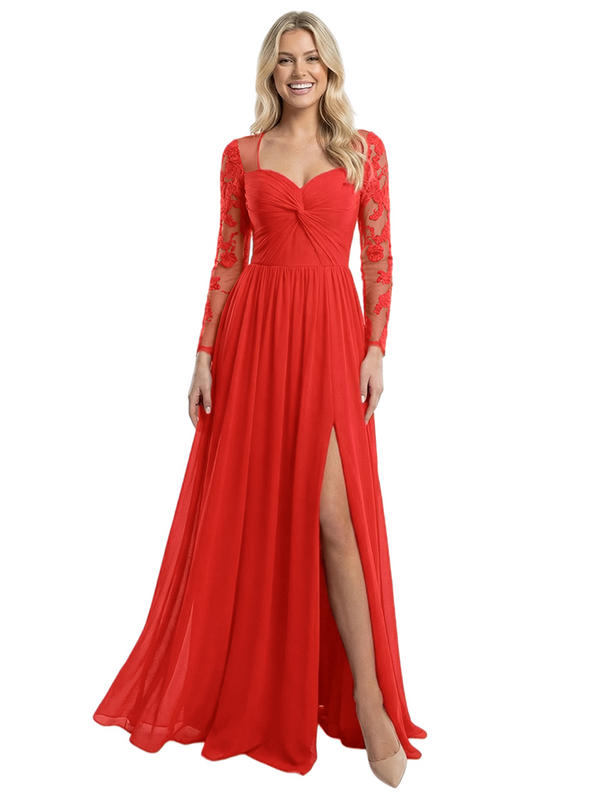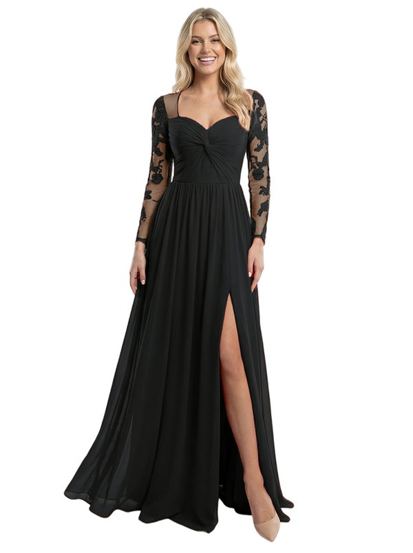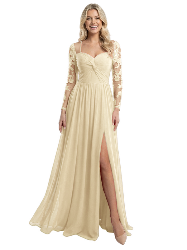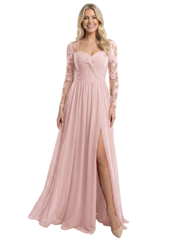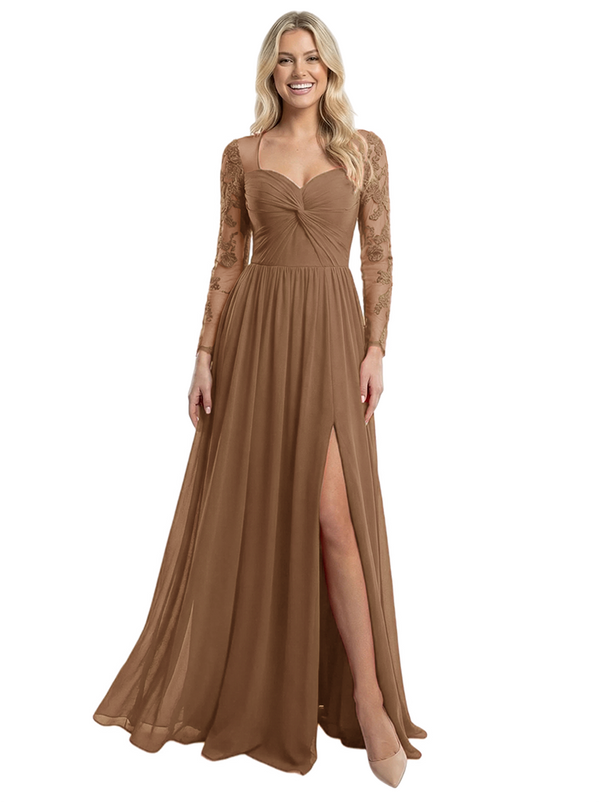 Elegant V-Neck Side Slit Long Sleeves Ruched A-Line Chiffon Formal Prom Dress - ChicSew – ChicSew