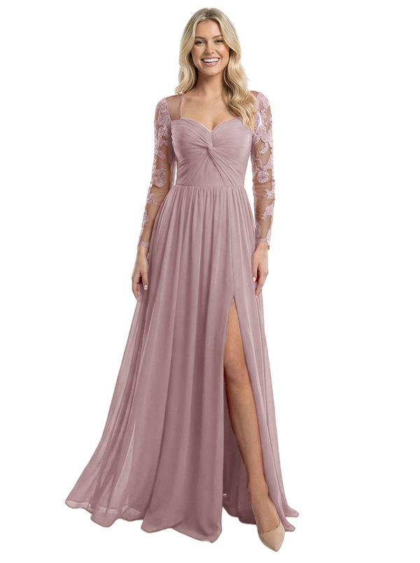 Elegant Chiffon Lace Long Sleeves Jewel A-Line Mother Of The Bride DressesElegant Chiffon Lace Long Sleeves Jewel A-Line Mother Of The Bride Dresses