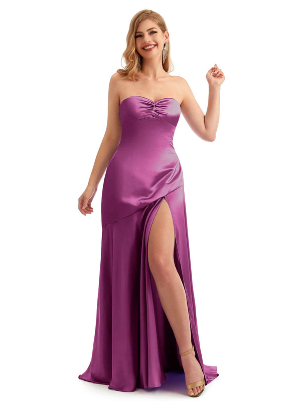 Fall Simple Sweetheart Satin Long Bridesmaid Dresses