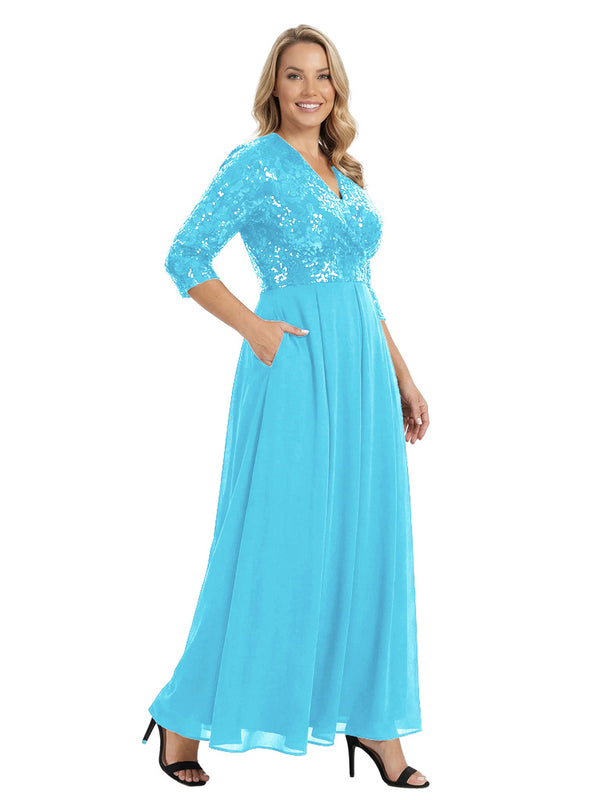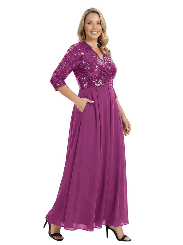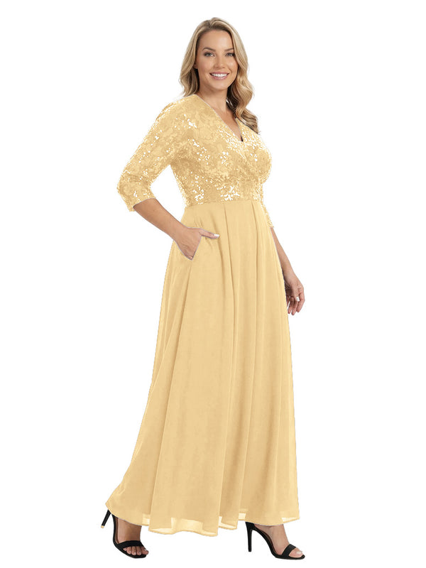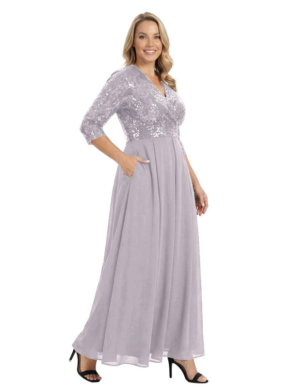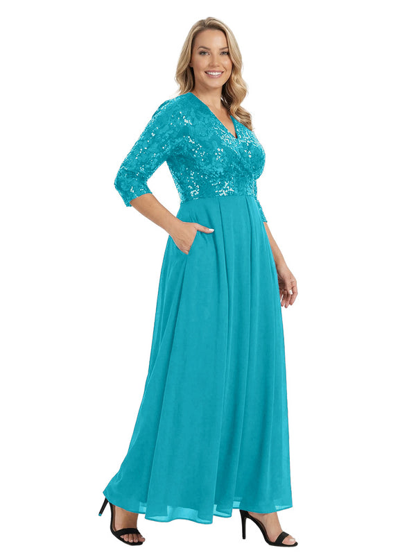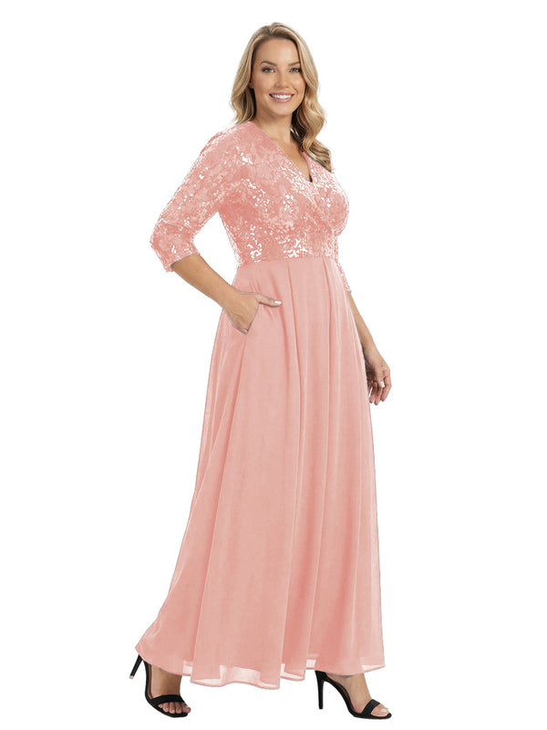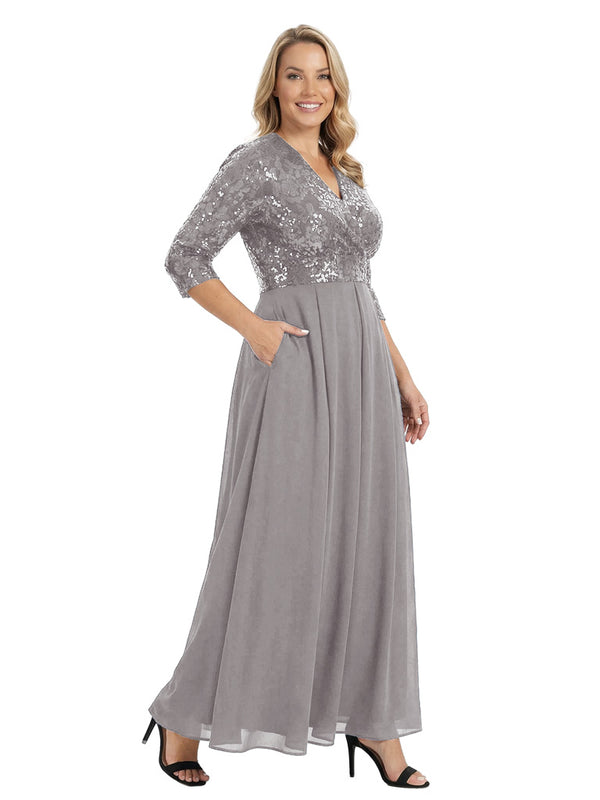 Fancy V-Neck Sequin Chiffon A-Line Floor-Length Mother Of The Groom Gown With Pocket - ChicSew – ChicSew
