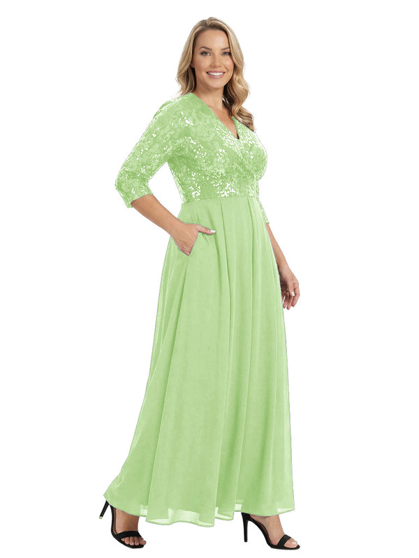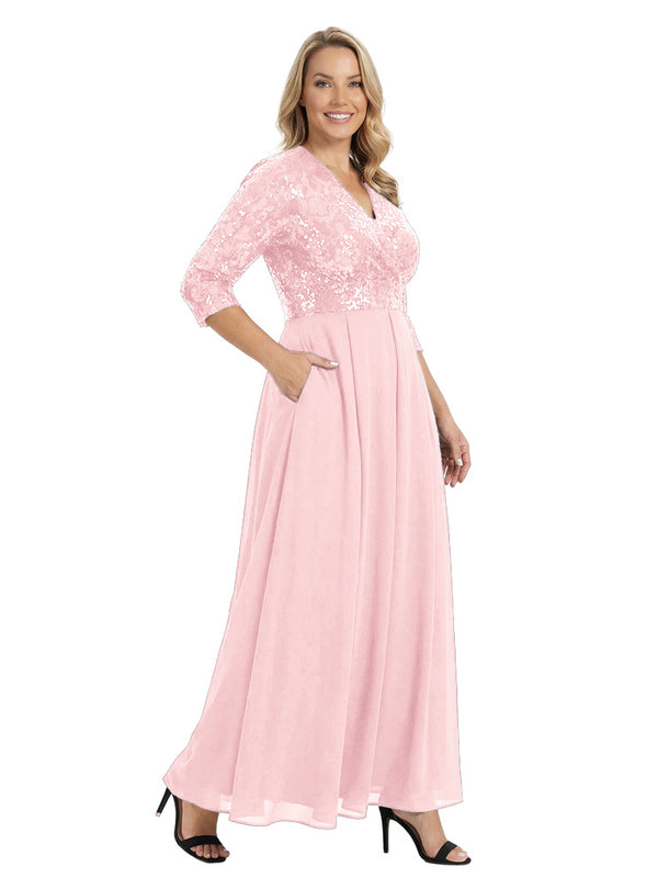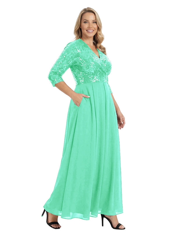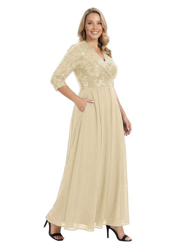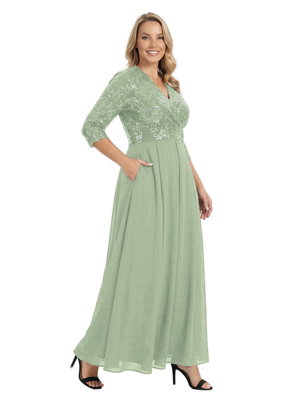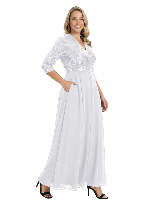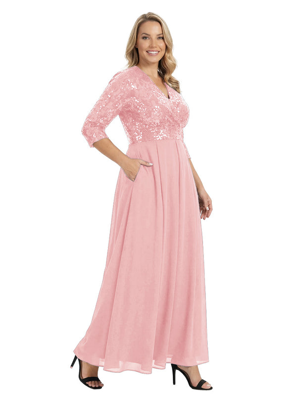 Fancy V-Neck Sequin Chiffon A-Line Floor-Length Mother Of The Groom Gown With Pocket - ChicSew – ChicSew