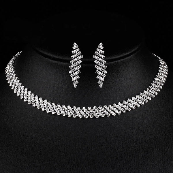 Rhinestone Jewelry Set - Necklace, Bracelet, Earrings for Women's Wedding Party