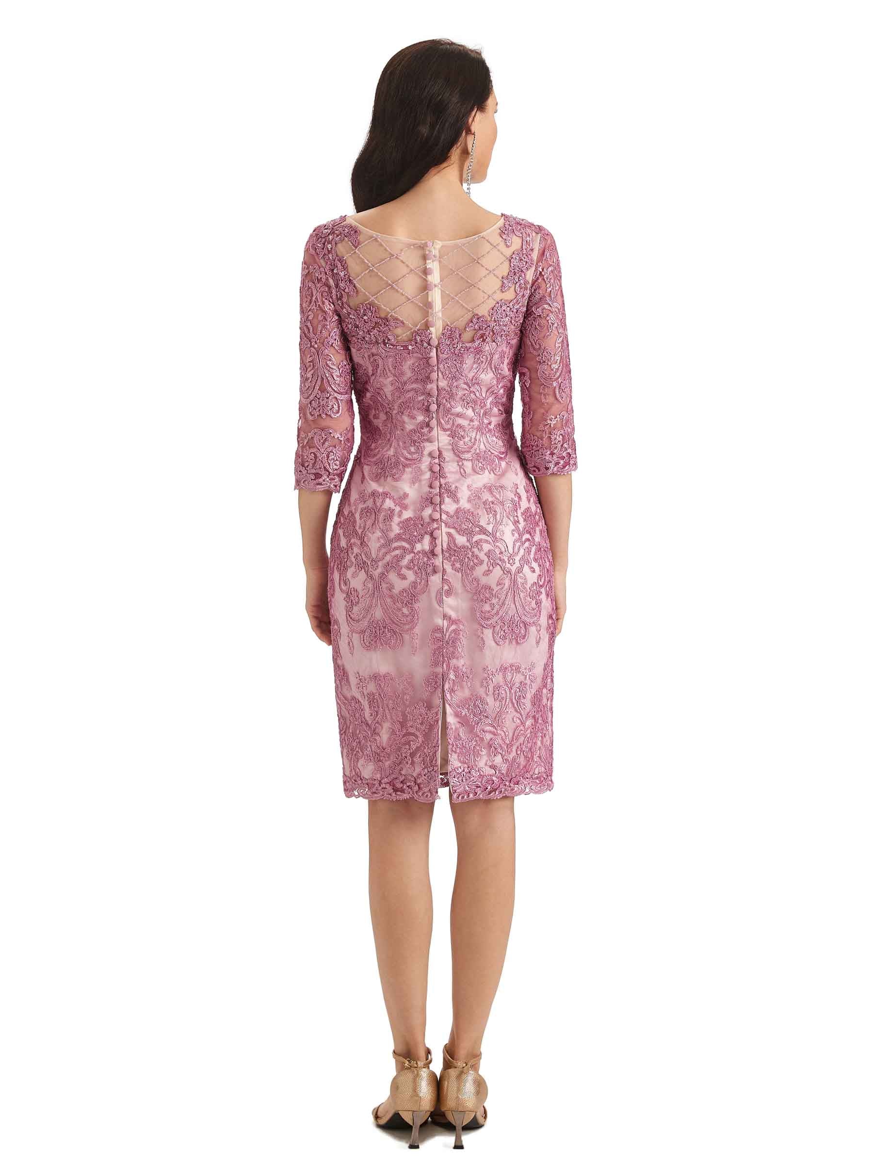 Gorgeous Beaded Luxury Short Illusion 3/4 Sleeves Knee Length Prom Dresses Online - ChicSew – ChicSew