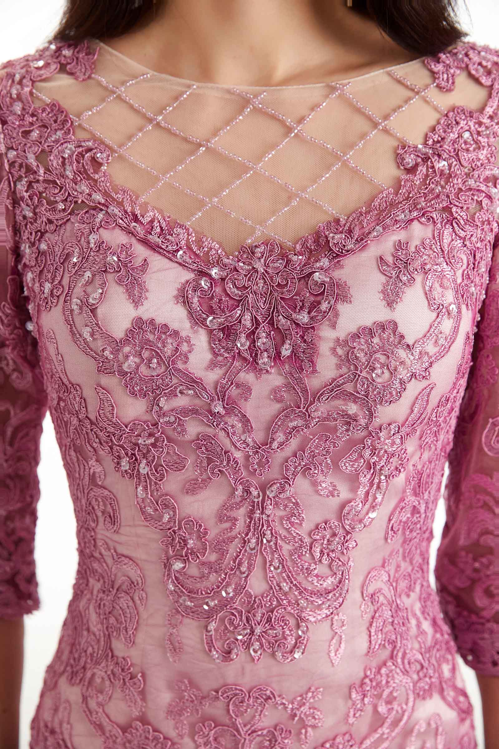 Gorgeous Lace Beaded Luxury Illusion Long Sleeves Short Mother of The Bride Dresses