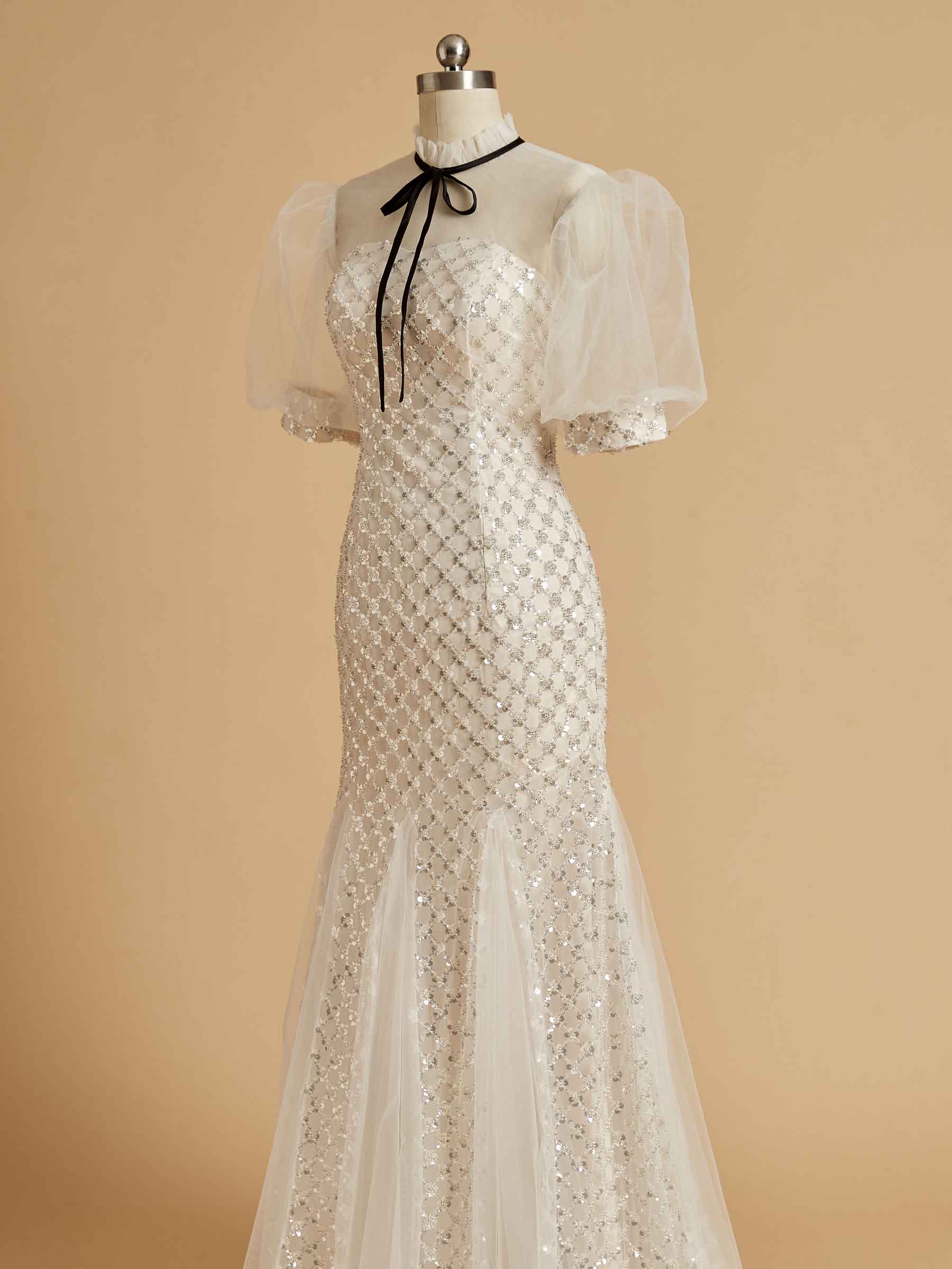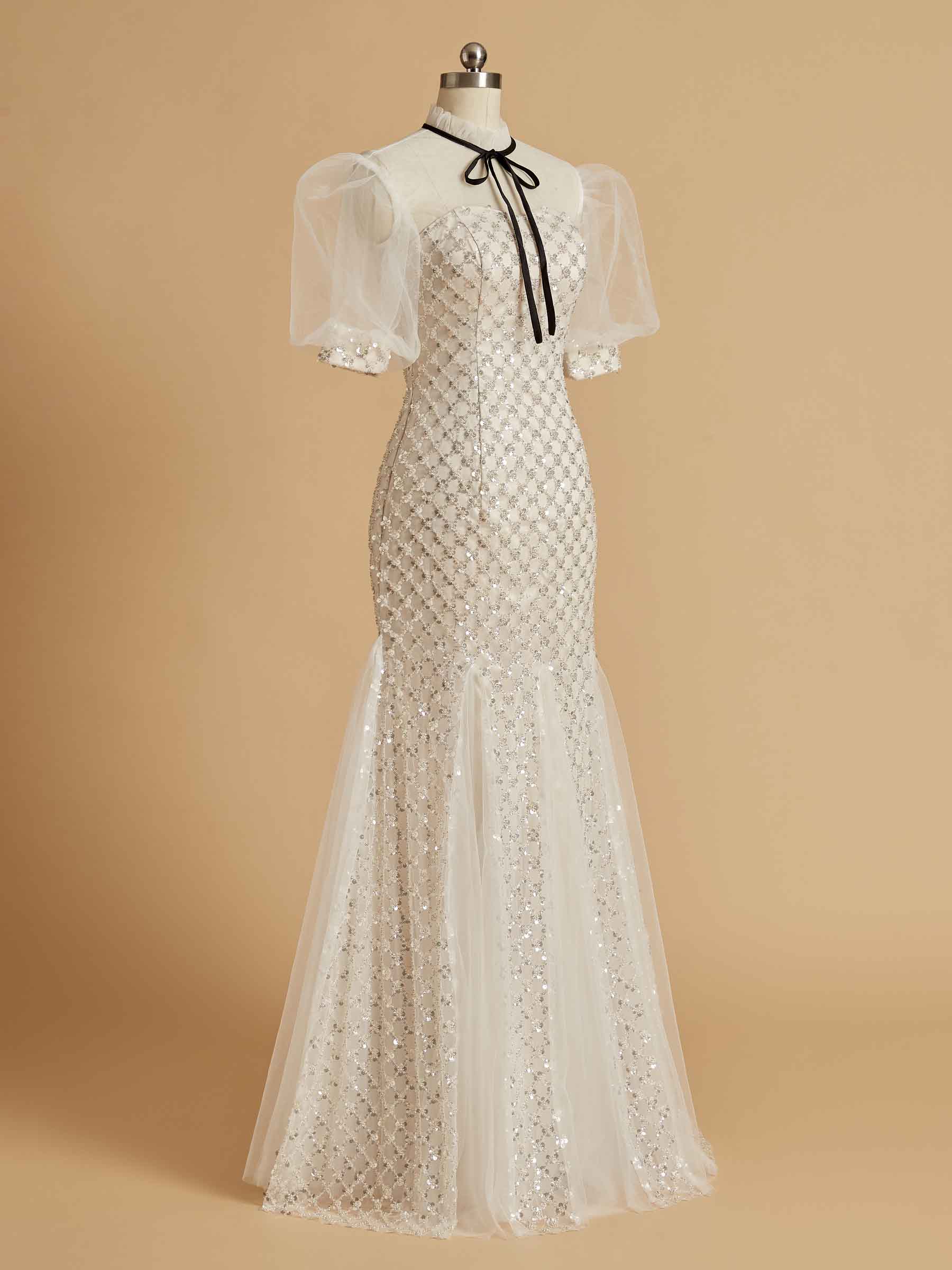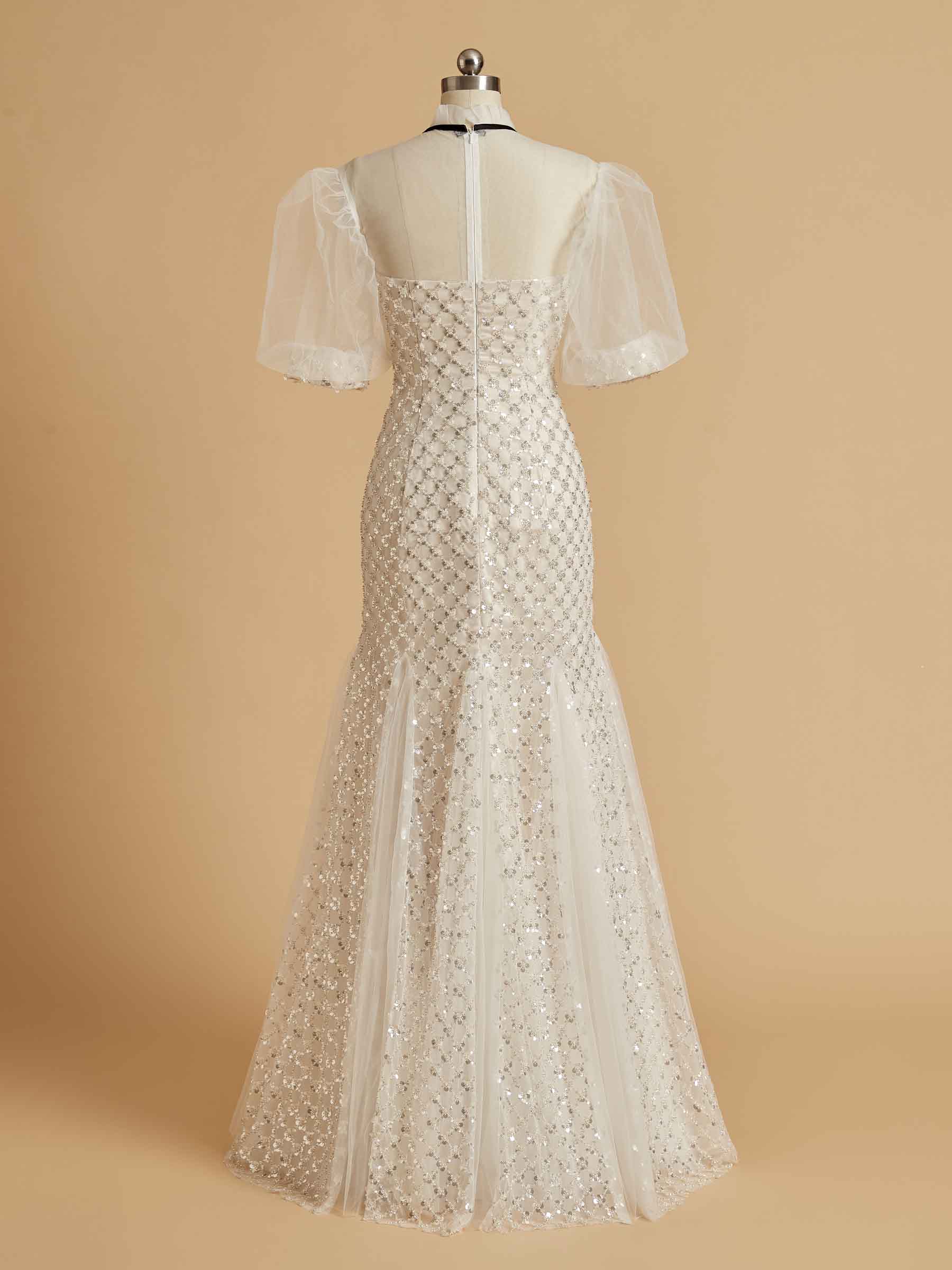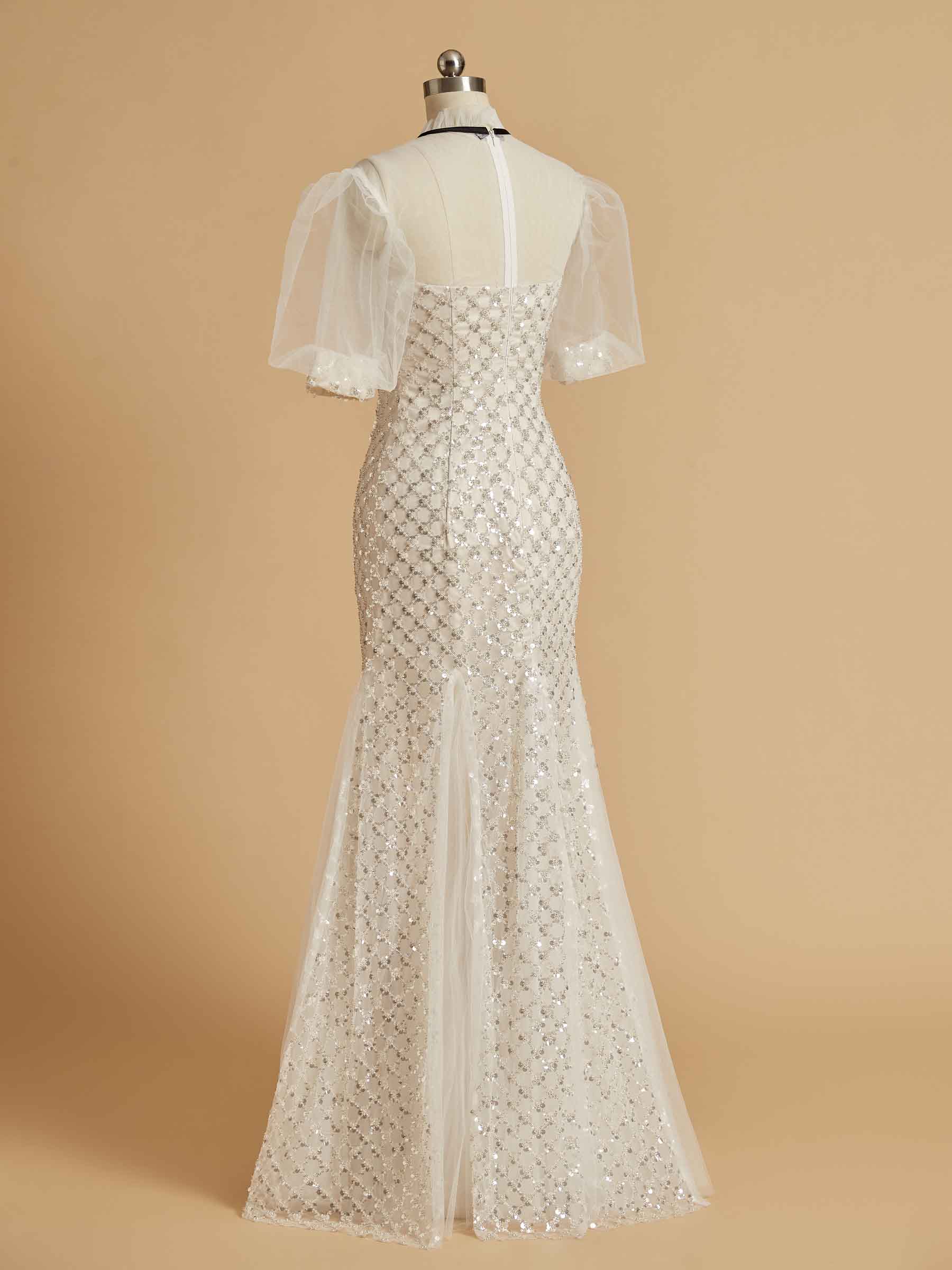 Gorgeous Sheath Short Sleeves High-neck Floor-length Long Party Prom Dresses - ChicSew – ChicSew
