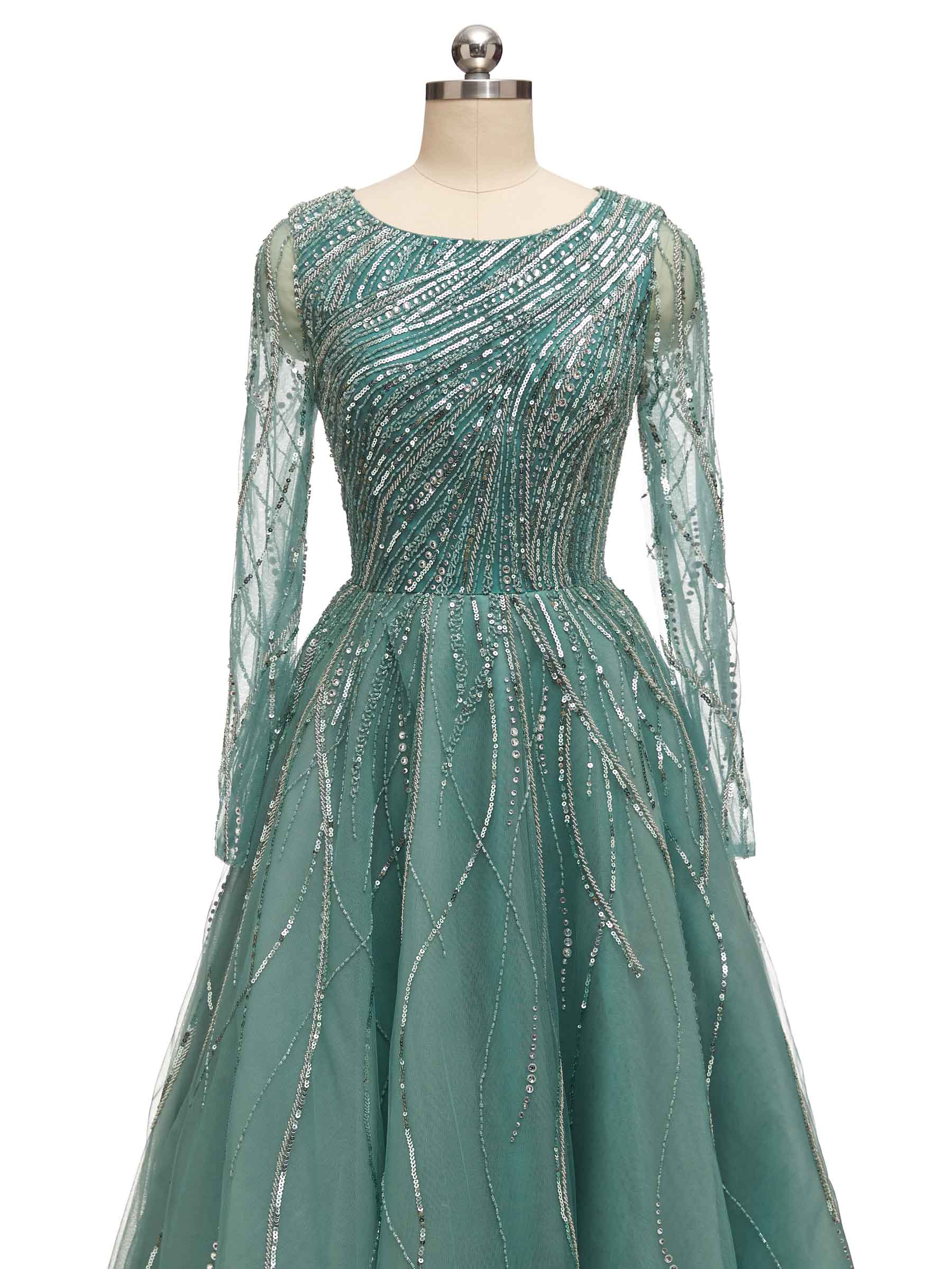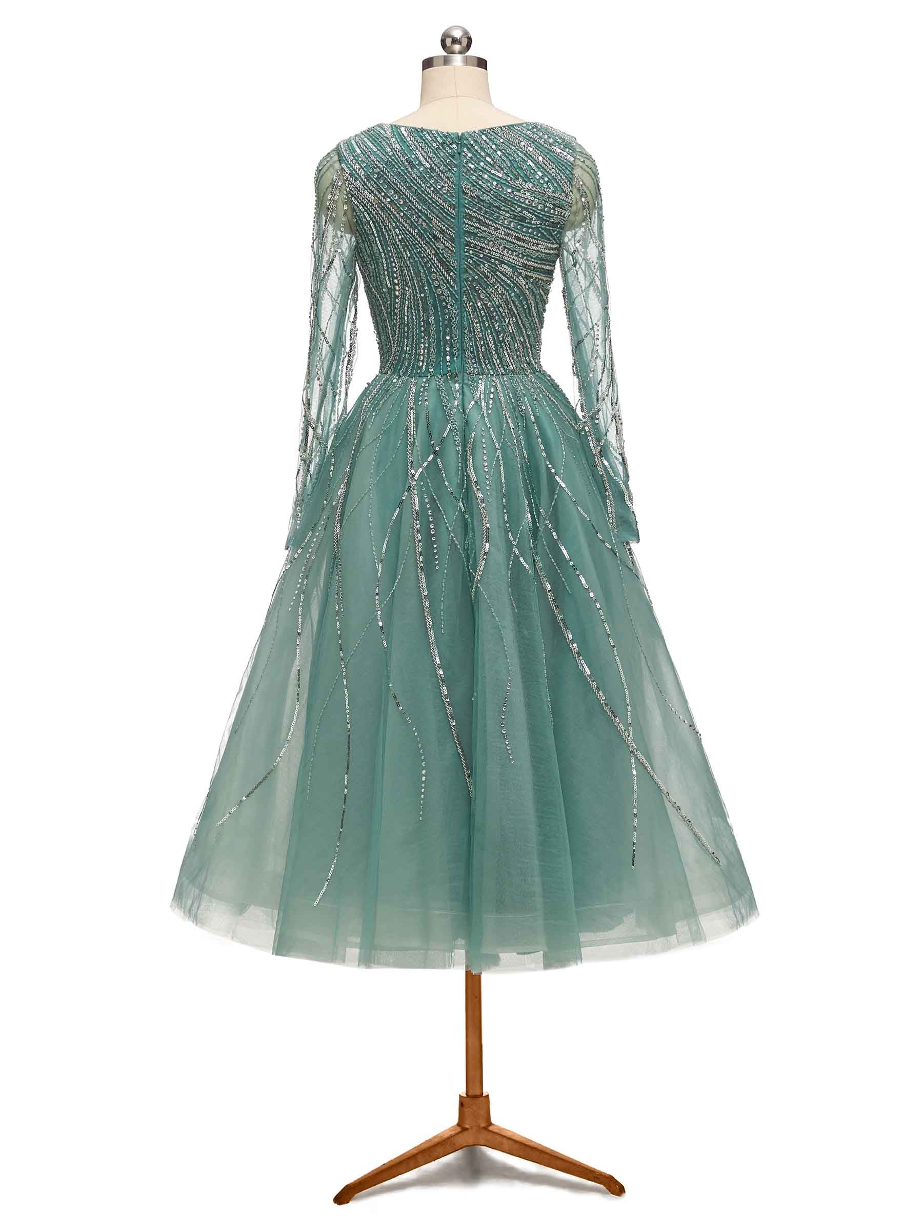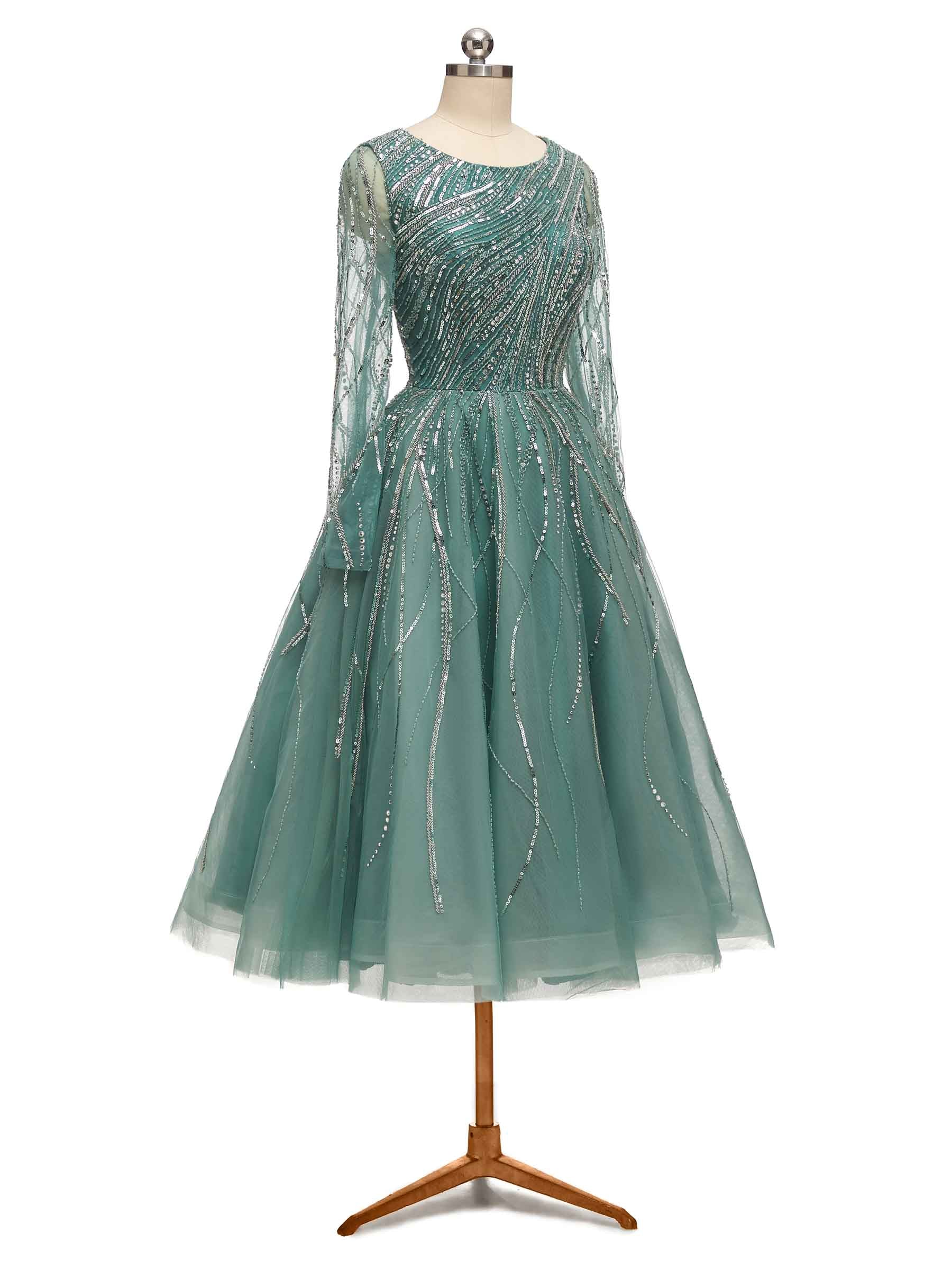 Sparky Dusty Green Long Sleeves Short Party Beaded Prom Dresses Online