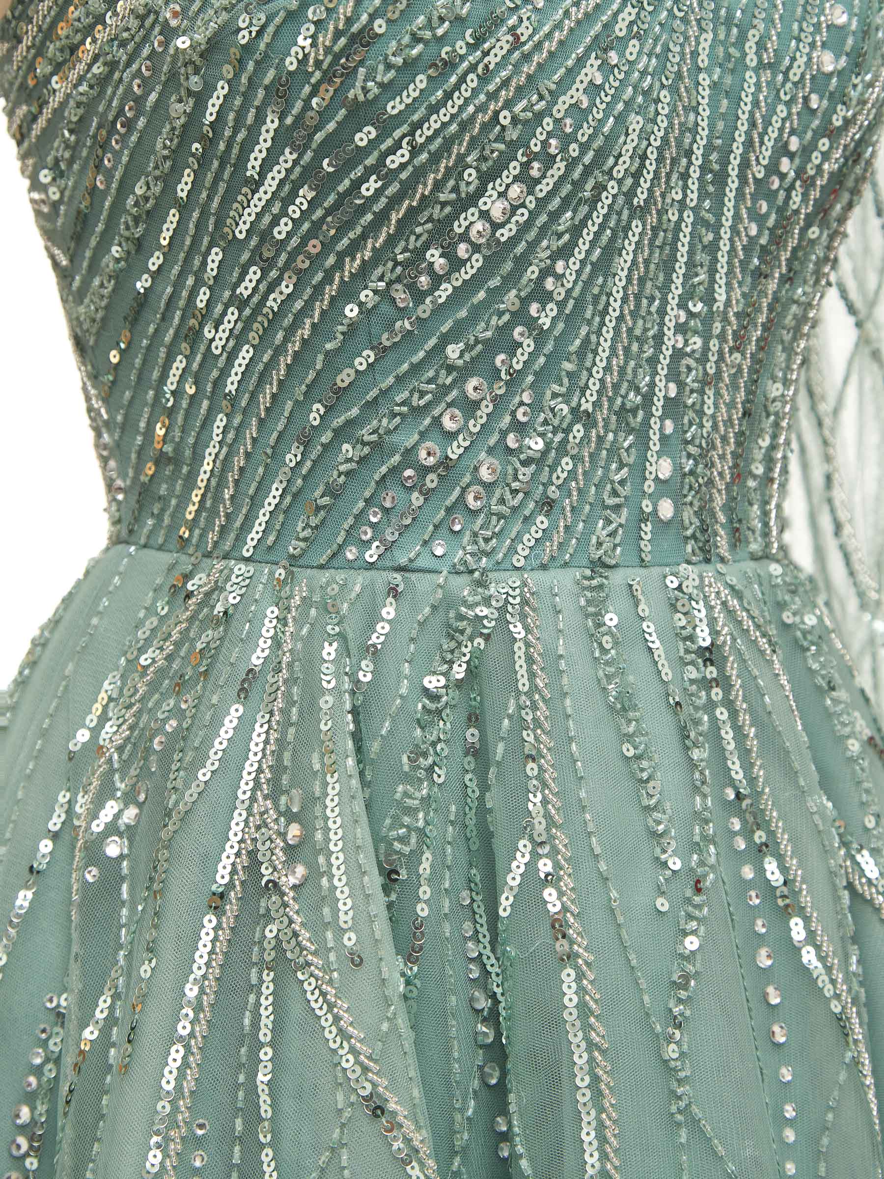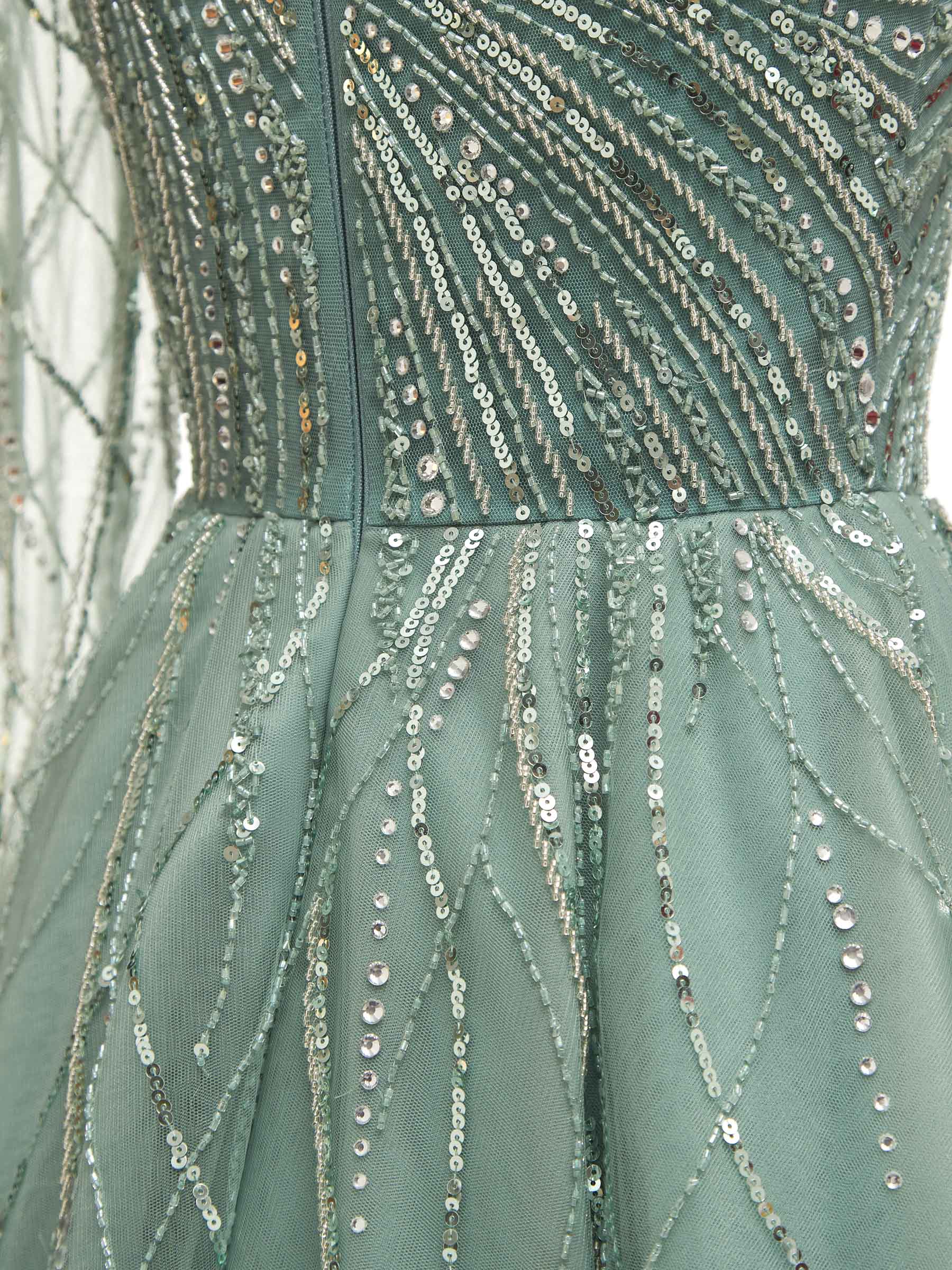 Material: Tulle, sequin, beading, rhinestone, pongee.