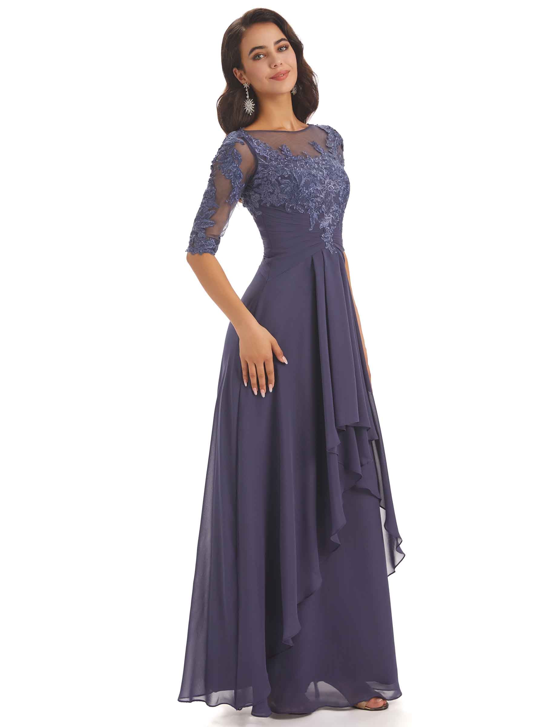 Half Sleeves Appliques Chiffon Elegant Floor-length Mother Of The Bride DressesHalf Sleeves Appliques Chiffon Elegant Floor-length Mother Of The Bride Dresses