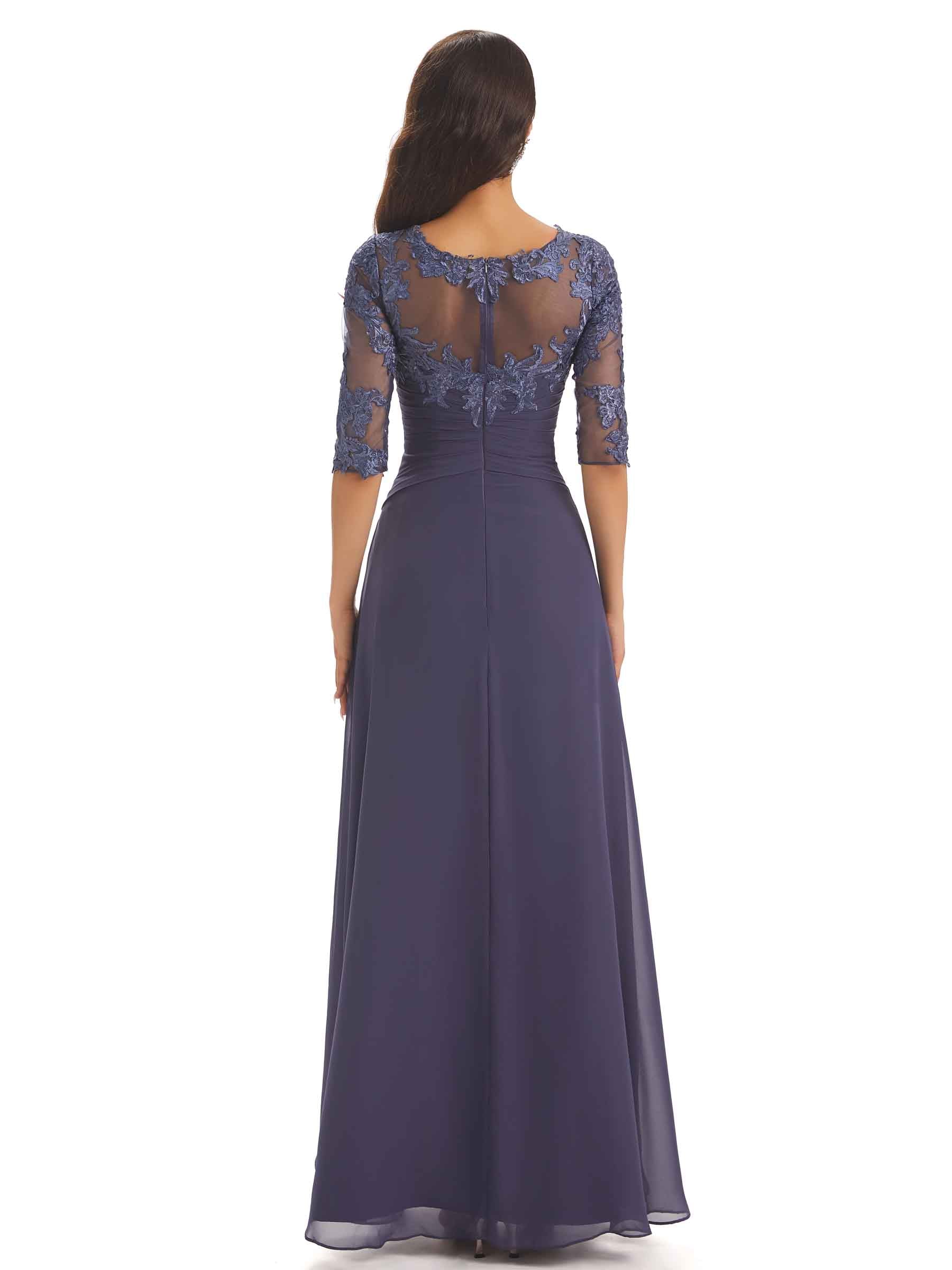 Half Sleeves Appliques Chiffon A-line Floor-length Mother Of The Bride Dresses - ChicSew – ChicSew