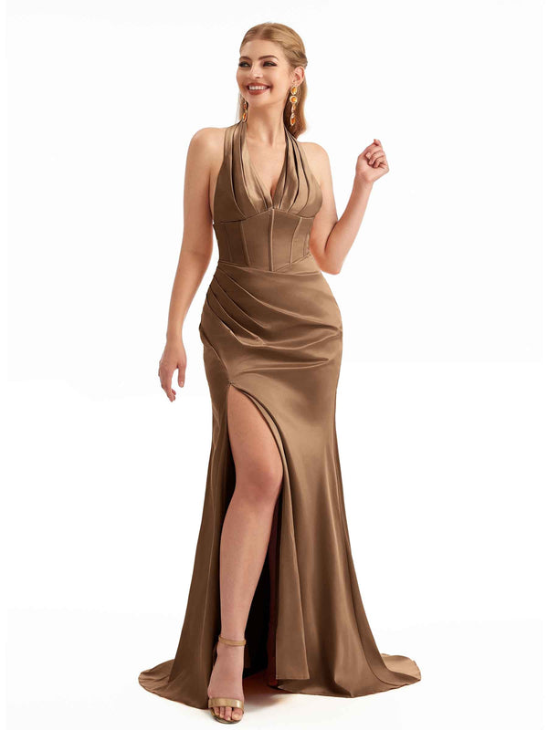 Halter V-Neck Boho Bridesmaid Dresses Satin Fabric - Chicsew – ChicSew