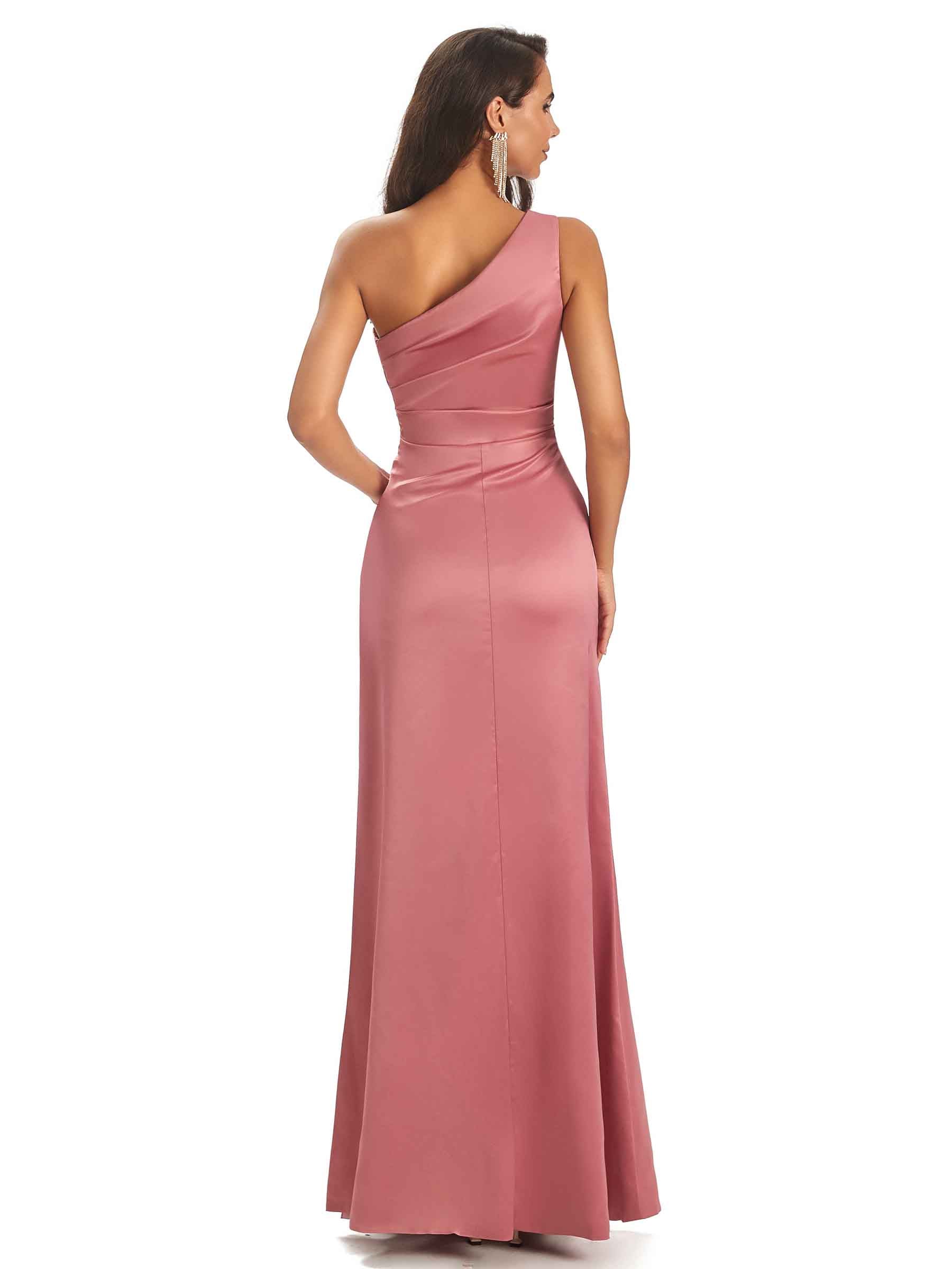 Modern Side Slit One Shoulder Soft Satin Sheath UniqueBridesmaid Dress – ChicSew