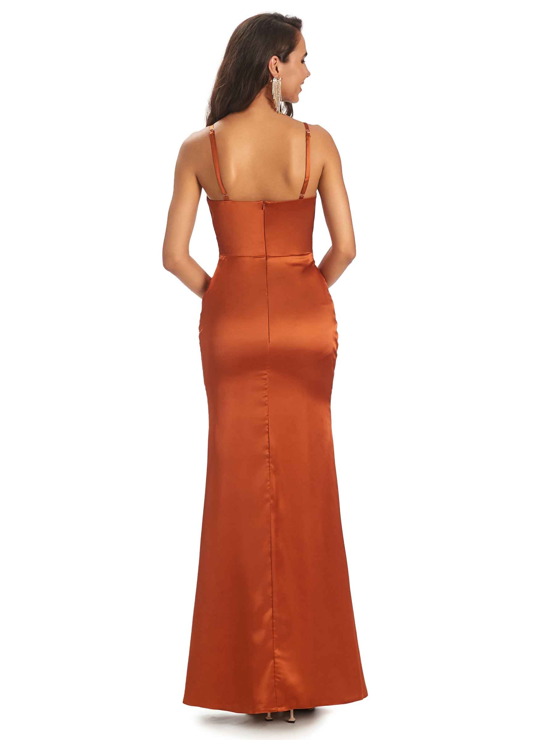 Hot Spaghetti Straps Soft Satin Pleats Side Slit Mermaid Long Bridesmaid Dresses - ChicSew – ChicSew