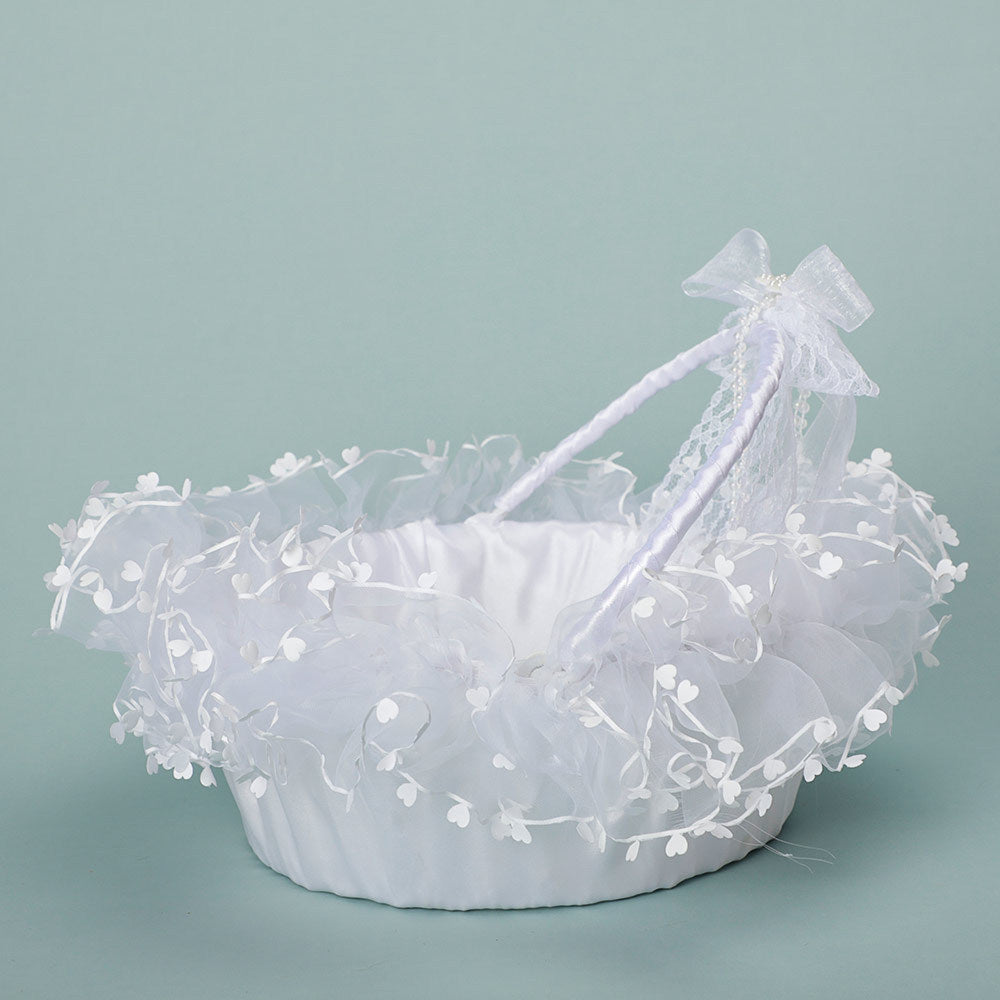Lace White Bow Decoration Portable Flower Basket With Movable Handle, – ChicSew