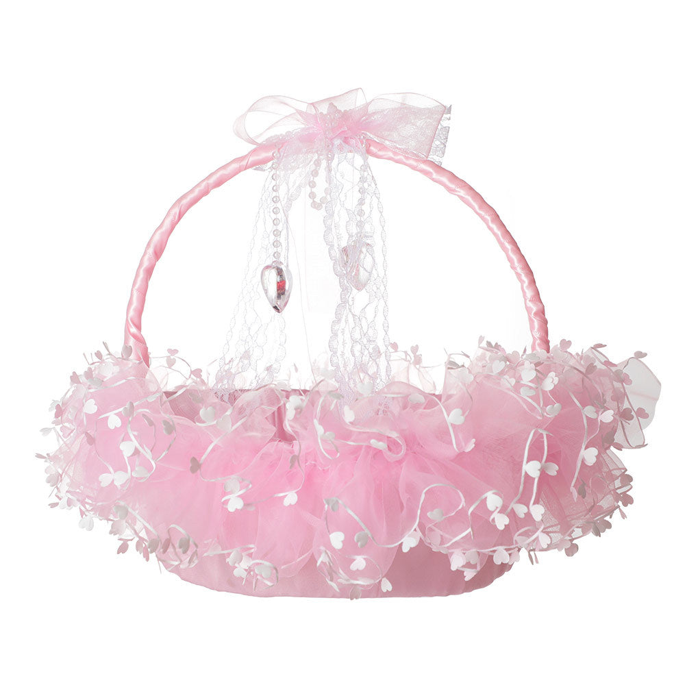 Lace White Bow Decoration Portable Flower Basket With Movable Handle, HL-5721 $27.99