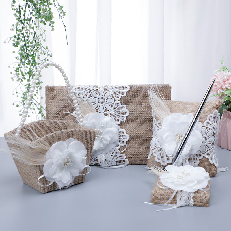 Linen/Satin Vintage Flower Girl Holding Flower Basket, HL-5743 – ChicSew