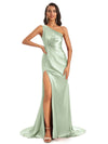Long Champagne Floor-Length Mermaid Satin Bridesmaid Dresses