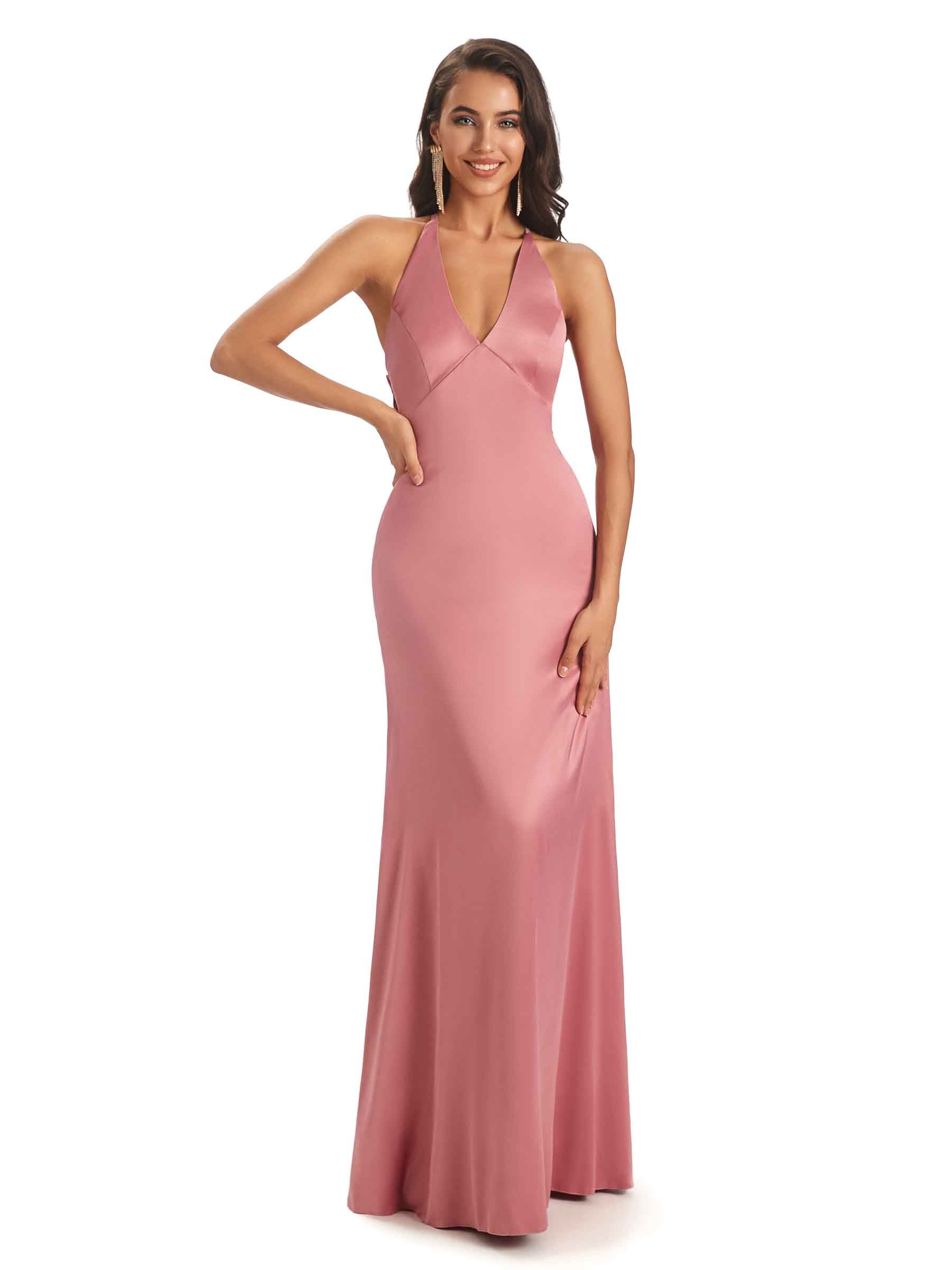 Floor-Length Soft Satin V-neck Halter Sexy African prom Dresses Online- ChicSew – ChicSew