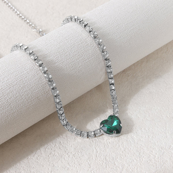 Luxury Emerald Love-shaped Necklace Clavicle Chain ins Necklace CN04 – ChicSew