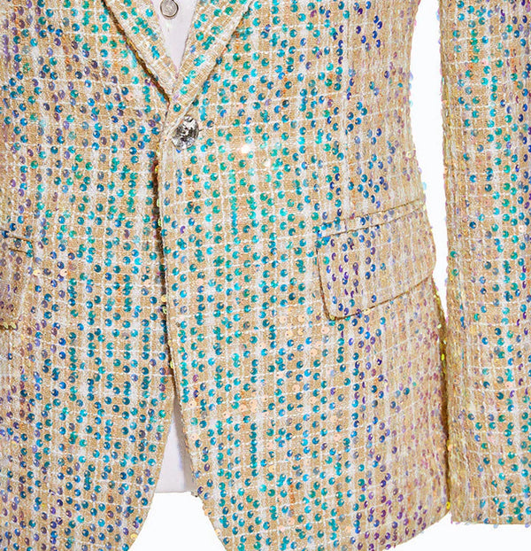 Men's Fashion Champagne Linen Sequin Wedding Tuxedo 2-Piece Set CN452 – ChicSew