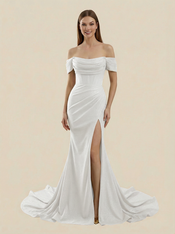Mermaid Off Shoulder Side Slit Maxi Long Sequin Wedding Dresses Online