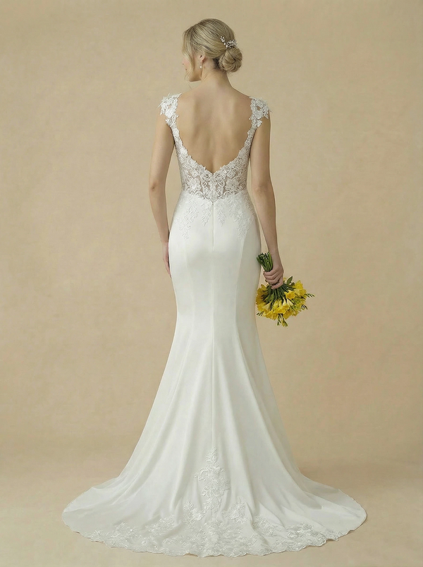 Mermaid Spaghetti Straps V-Neck Maxi Long Lace And Satin Wedding Dresses Online - ChicSew – ChicSew