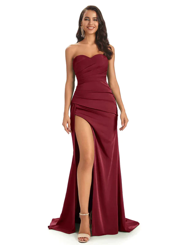 Mismatched Burgundy Sexy Mermaid Soft Satin Long Bridesmaid Dresses On – ChicSew
