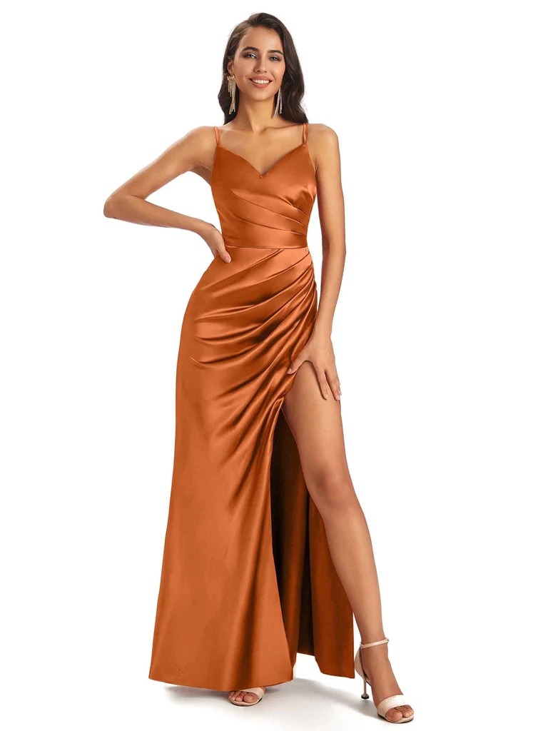 Mismatched Burnt Orange Sexy Mermaid Soft Satin Long Bridesmaid Dresse – ChicSew