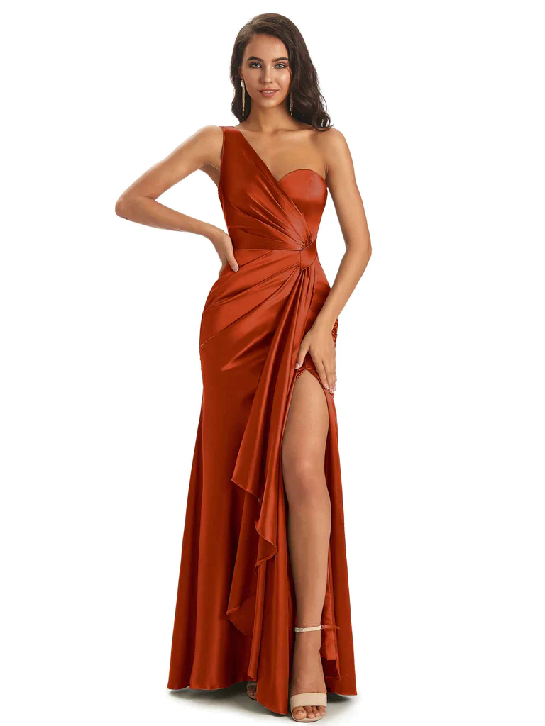 Mismatched Rust Sexy Side Slit Mermaid Soft Satin Long Bridesmaid Dres – ChicSew