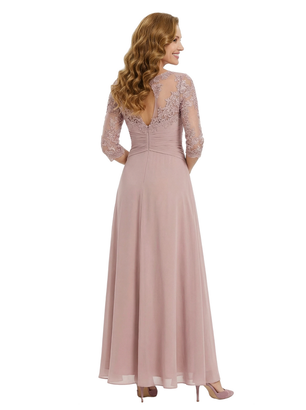 Elegant Chiffon Half Sleeves Lace Long Mother  of The Bride DressesElegant Chiffon Half Sleeves Lace Long Mother  of The Bride Dresses