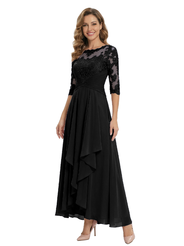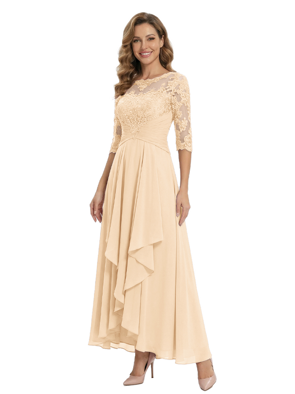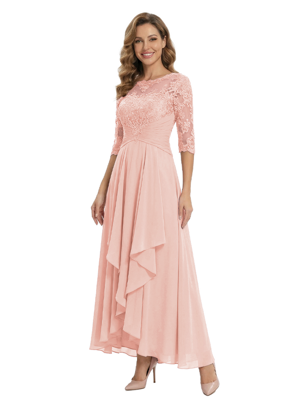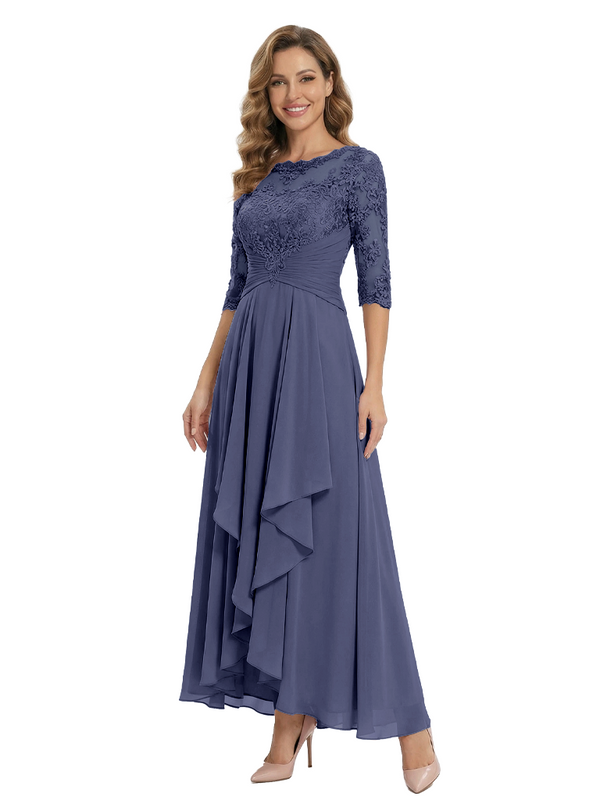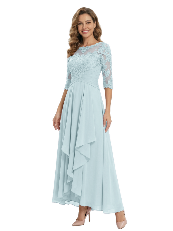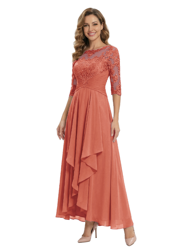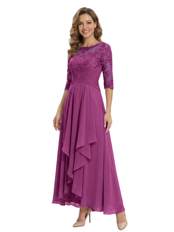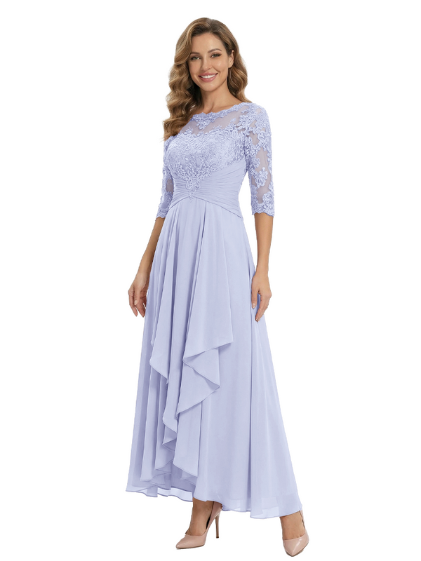 Modern Chiffon Lace Illusion A-Line Mother Of The Bride Dress With Ruffle And Half Sleeves - ChicSew – ChicSew