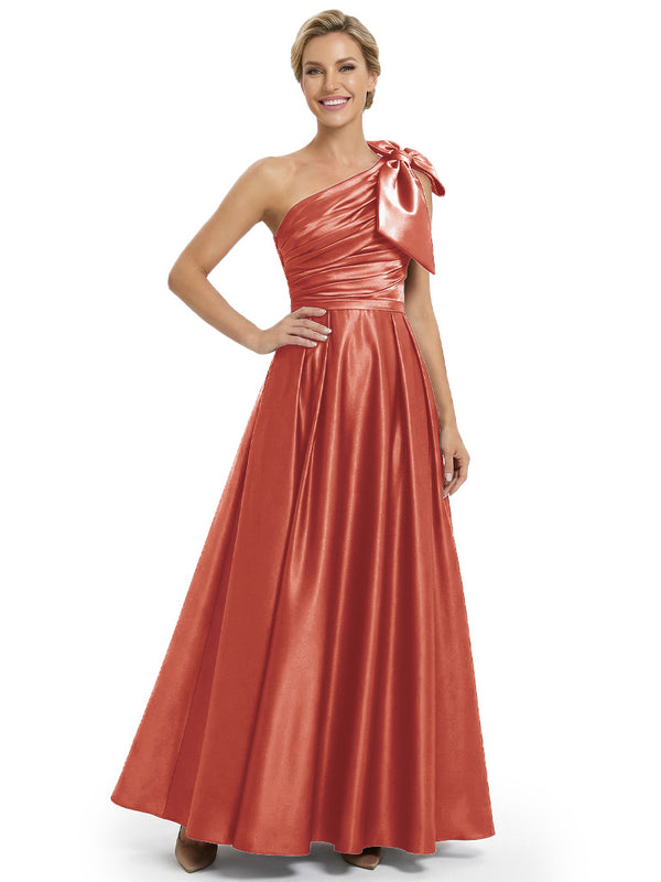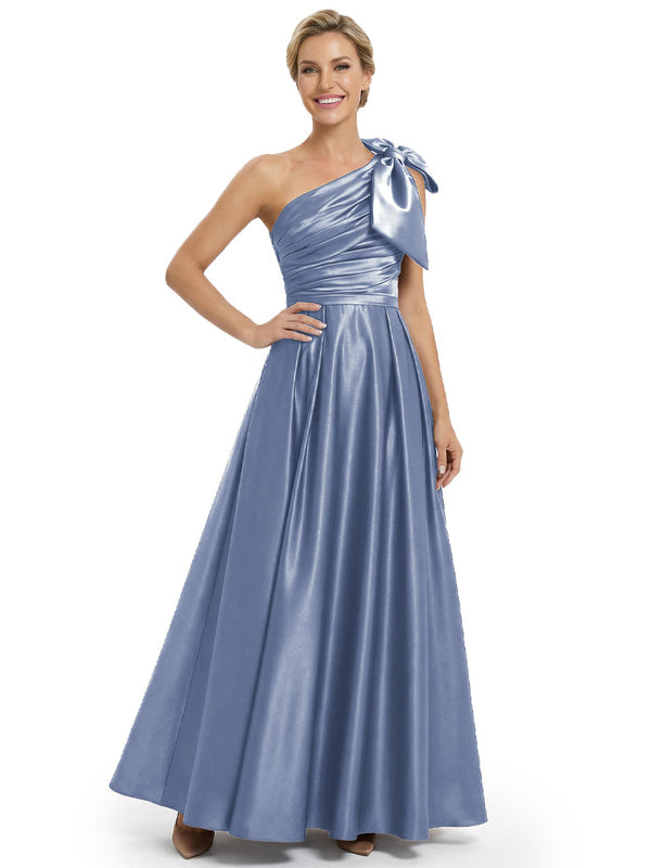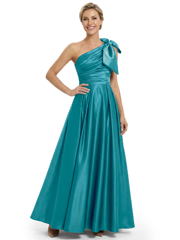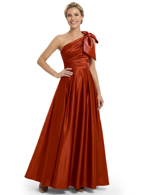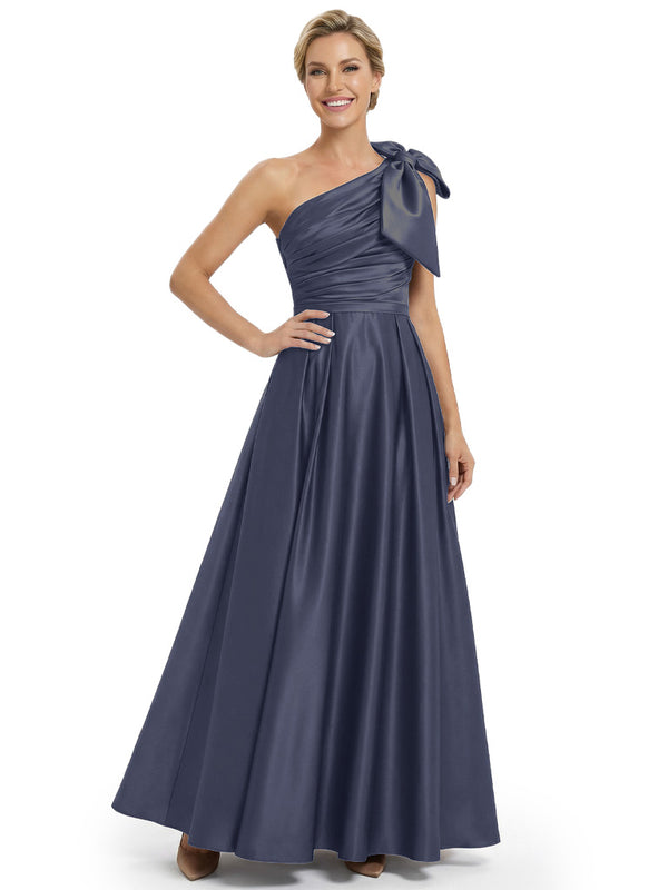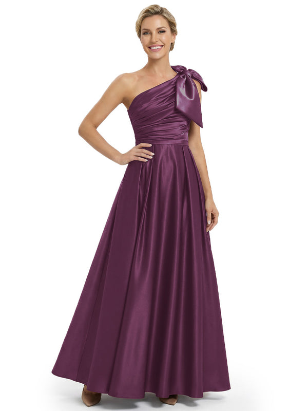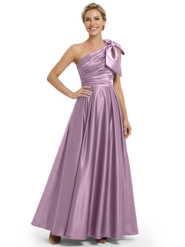 Modern One Shoulder Satin Bow Knot A-Line Mother Of The Bride Dresses