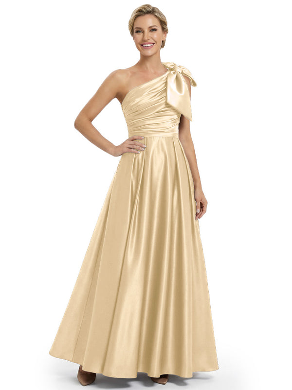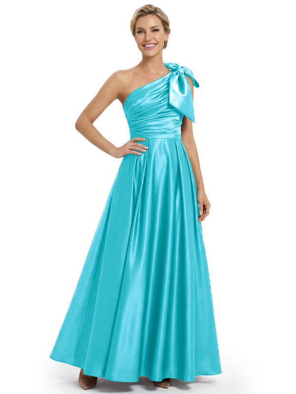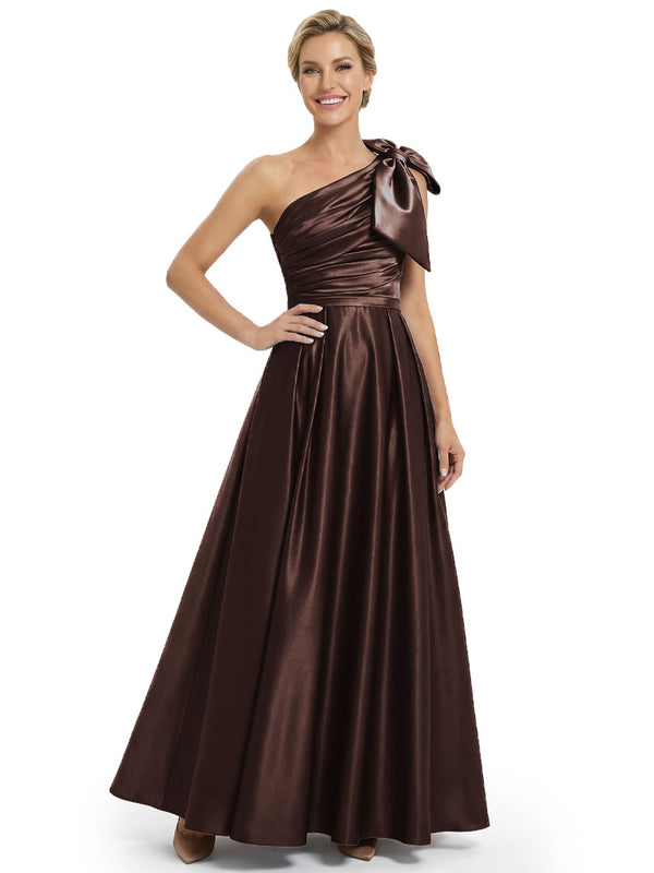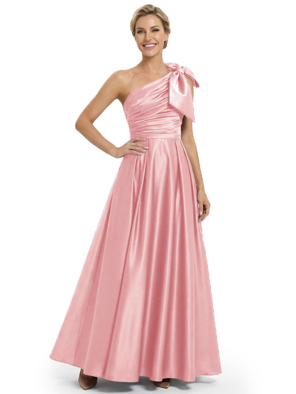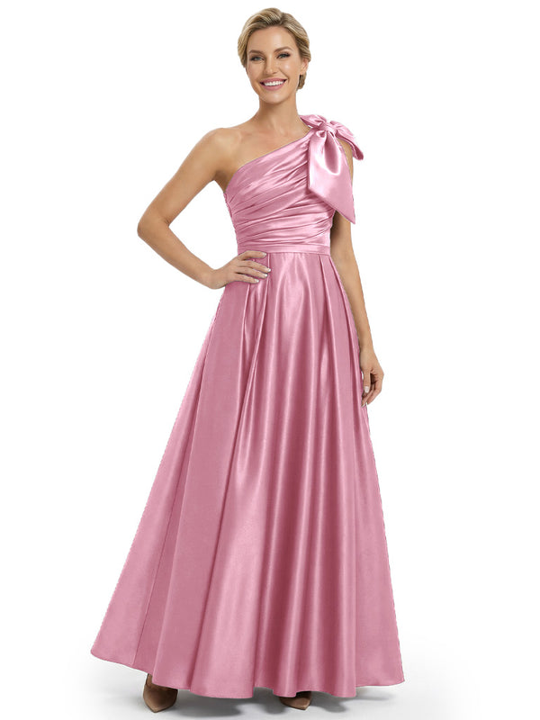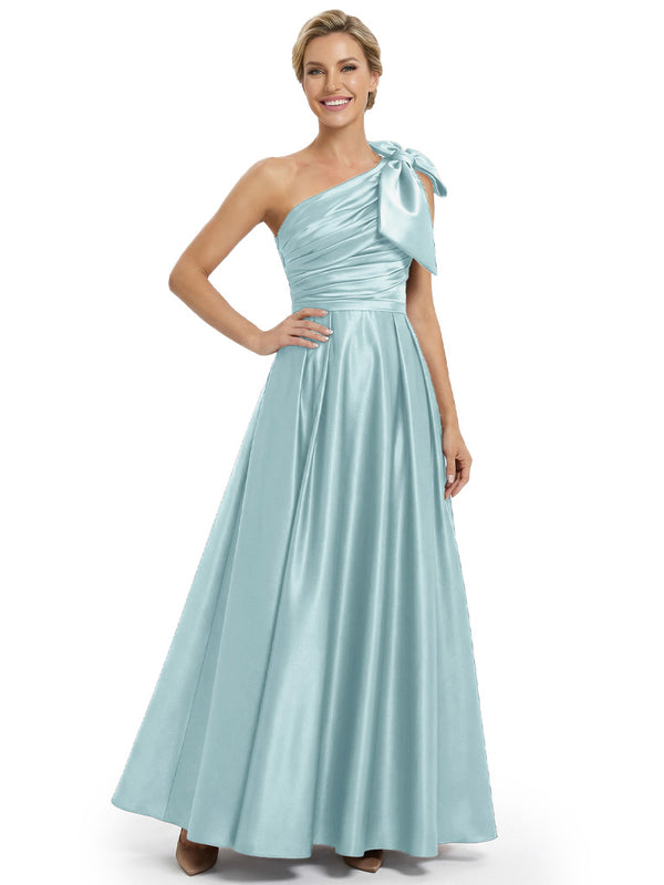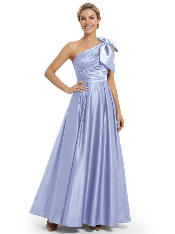Modern One Shoulder Satin Bow Knot A-Line Mother Of The Bride Dresses
