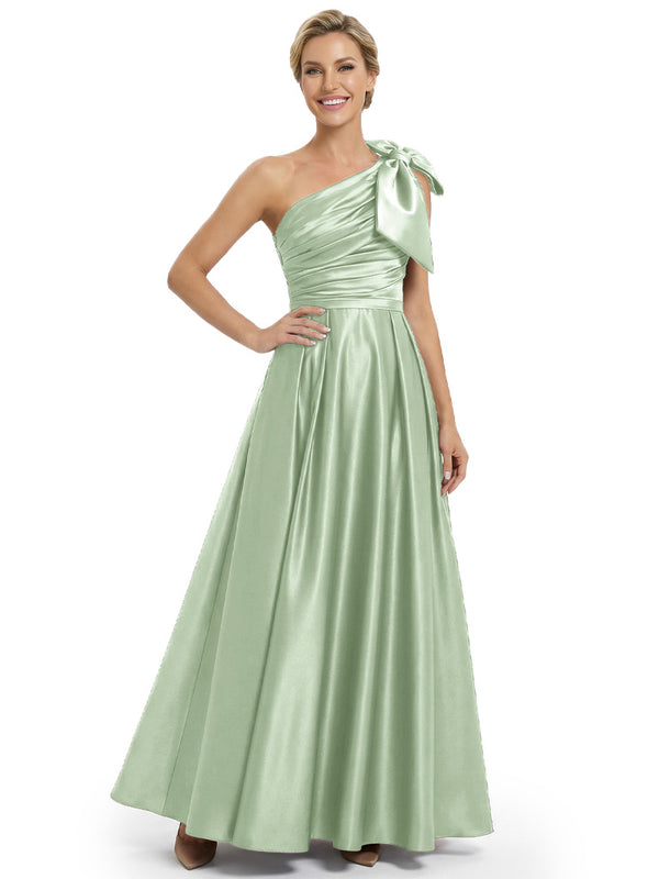 Modern One Shoulder Satin Bow Knot A-Line Mother Of The Bride Dresses - ChicSew – ChicSew